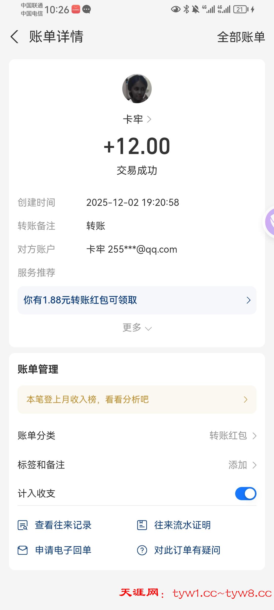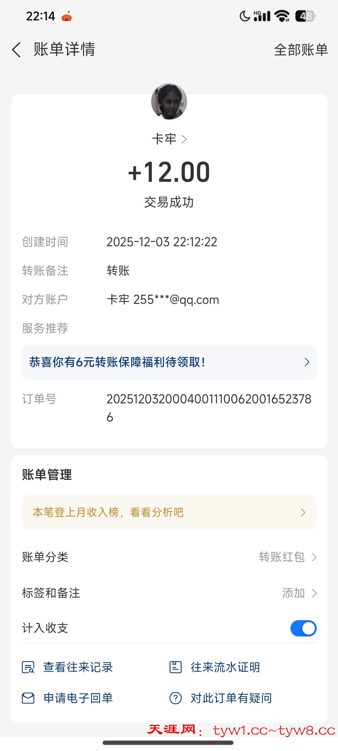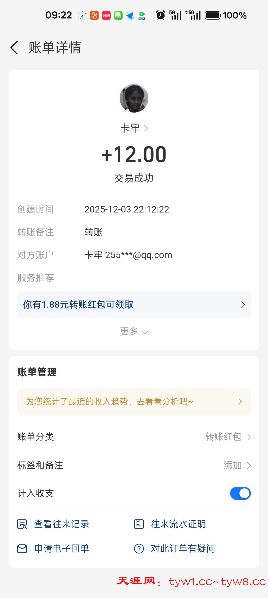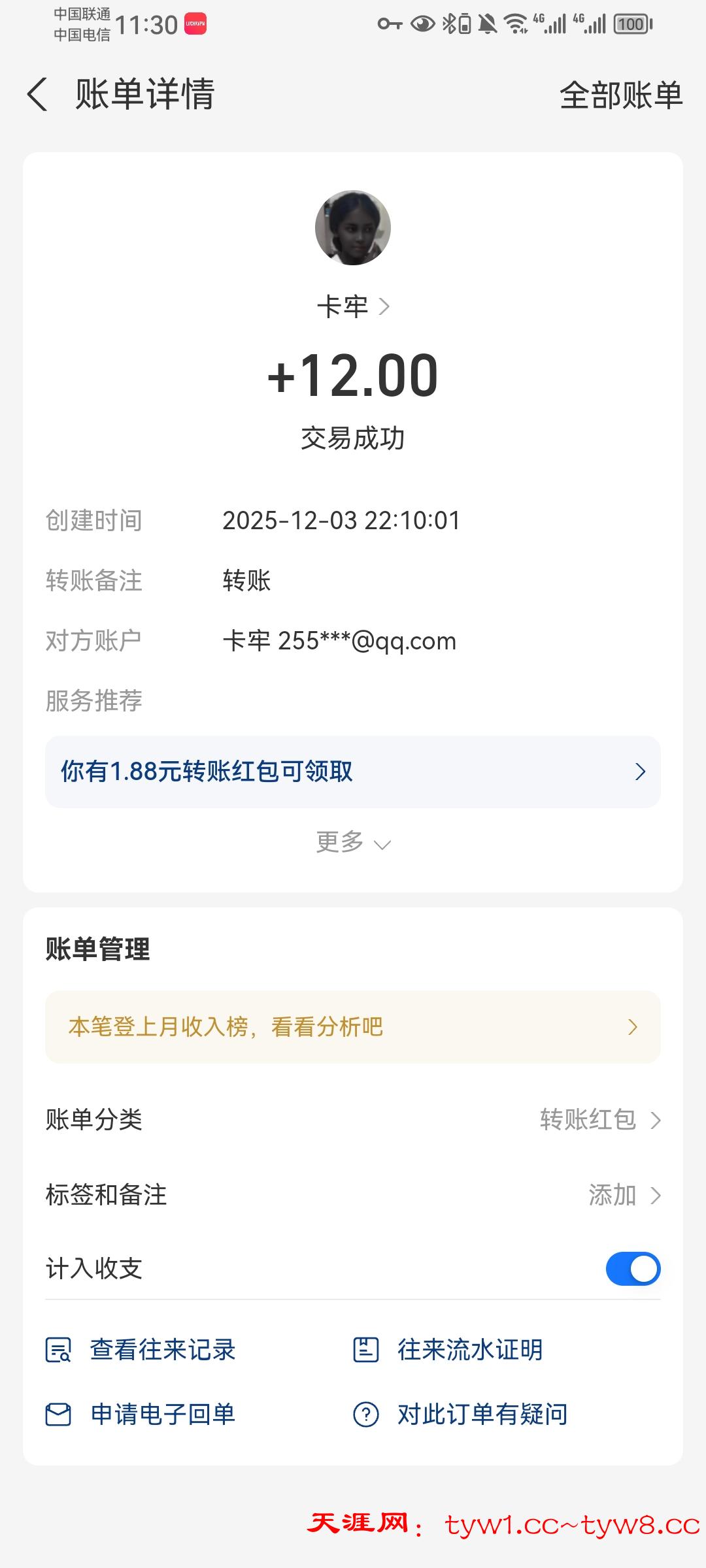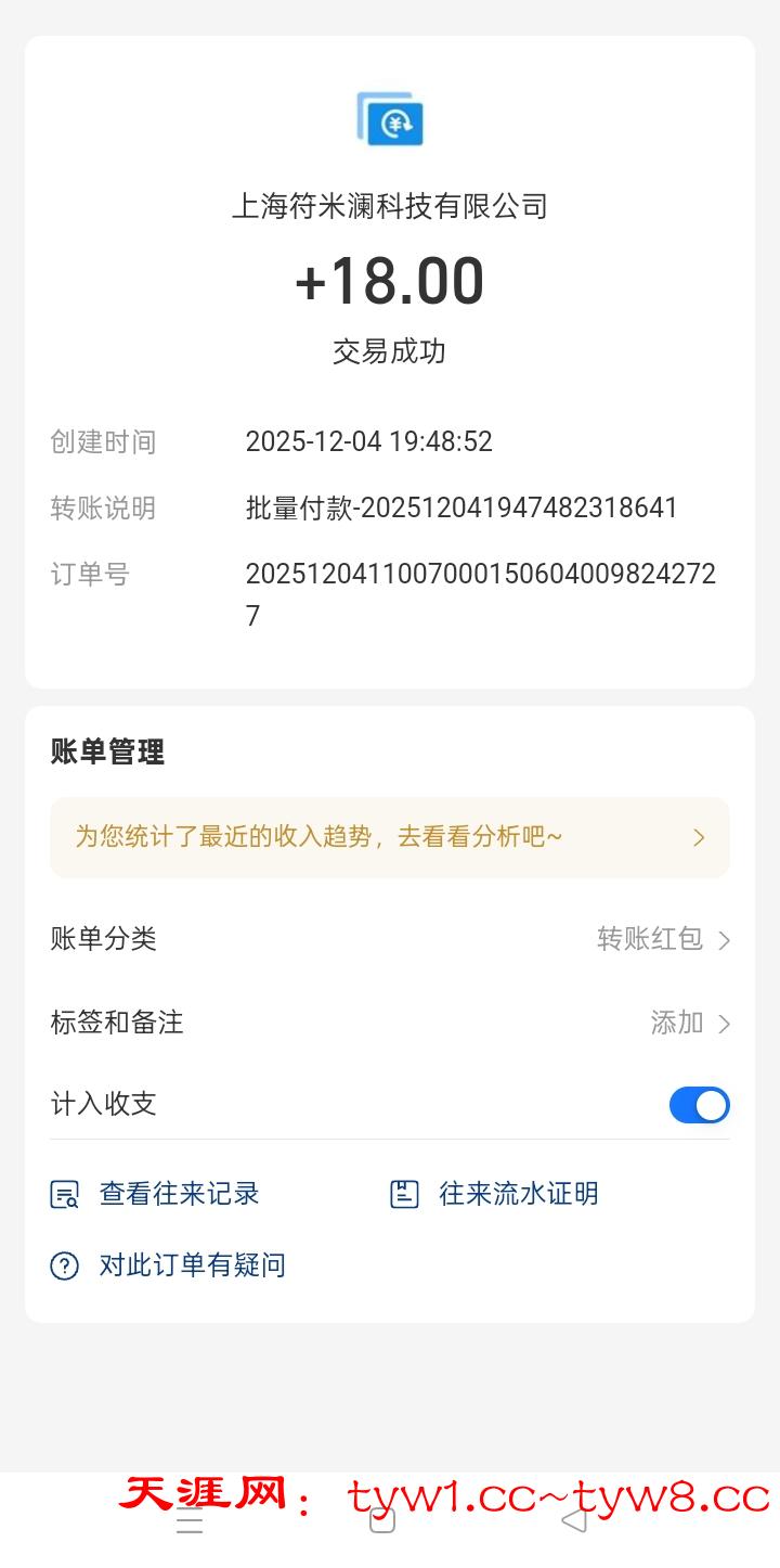 12.3到账,感谢天涯。
