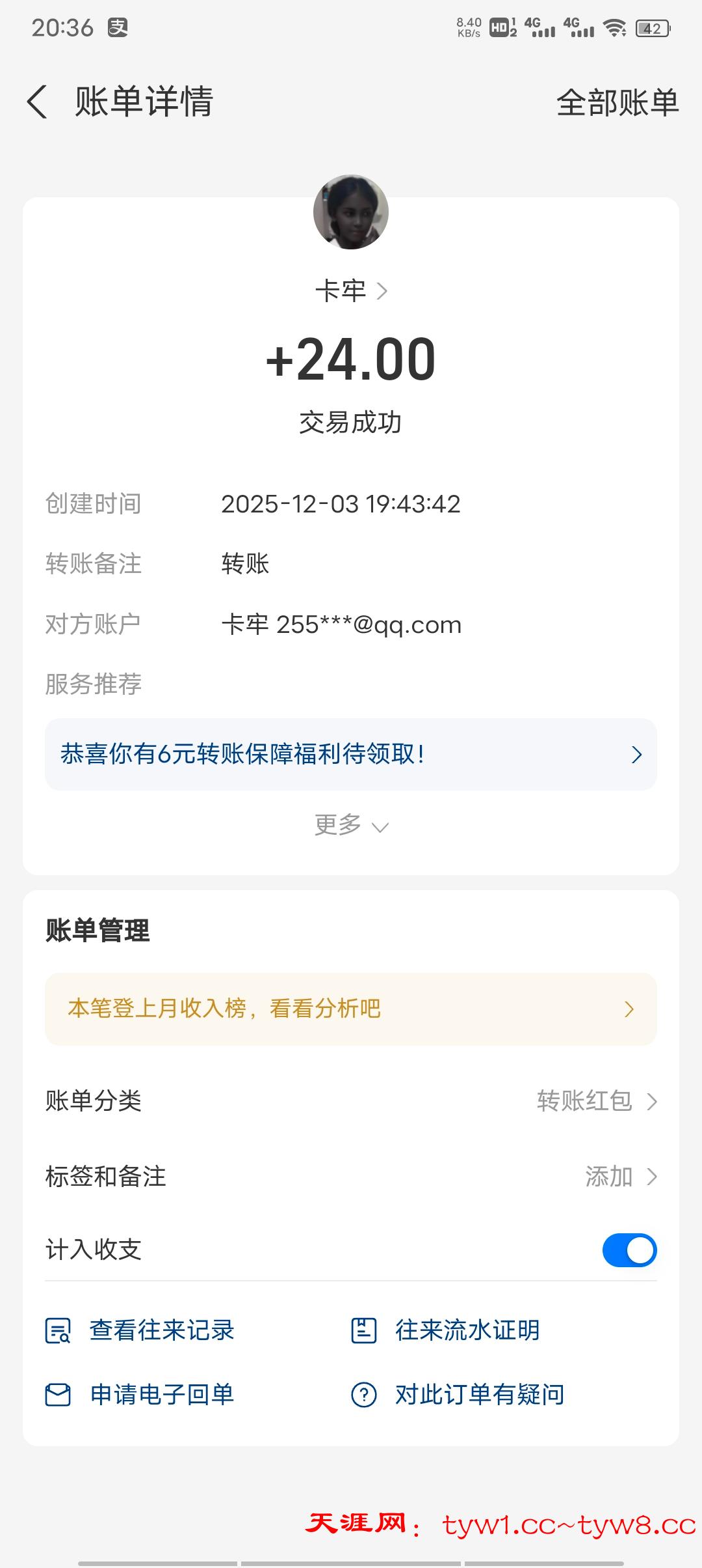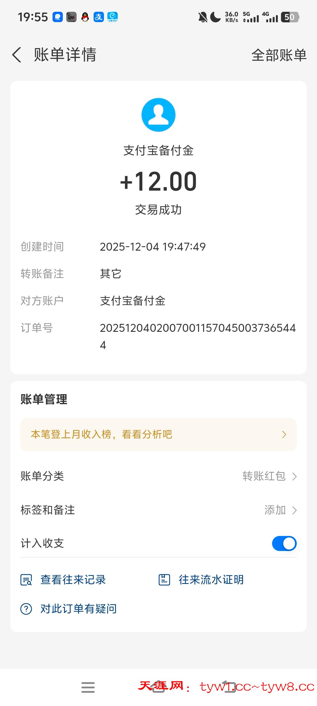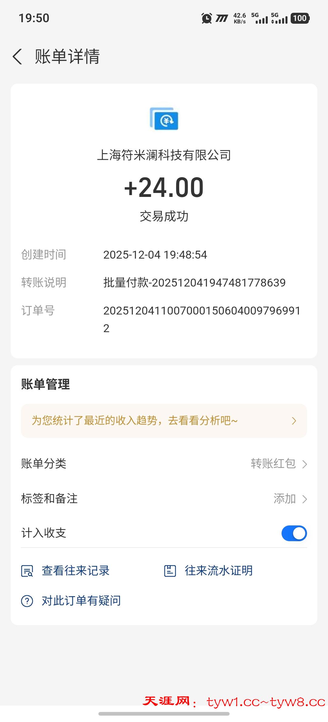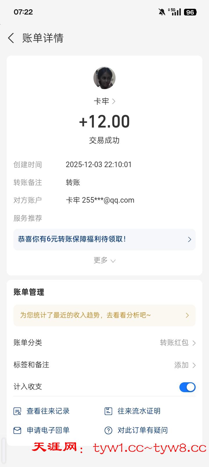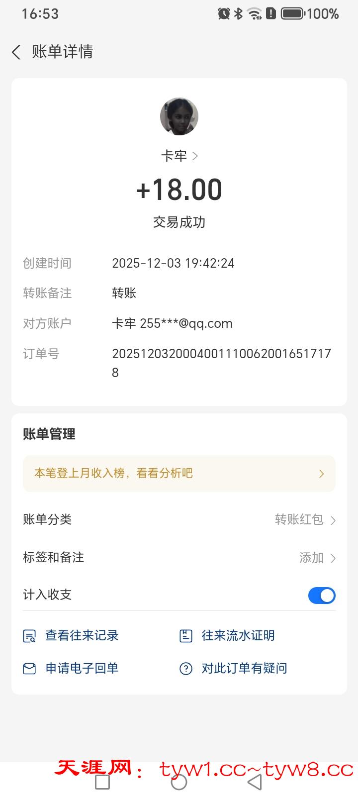 12.3到账,感谢天涯。