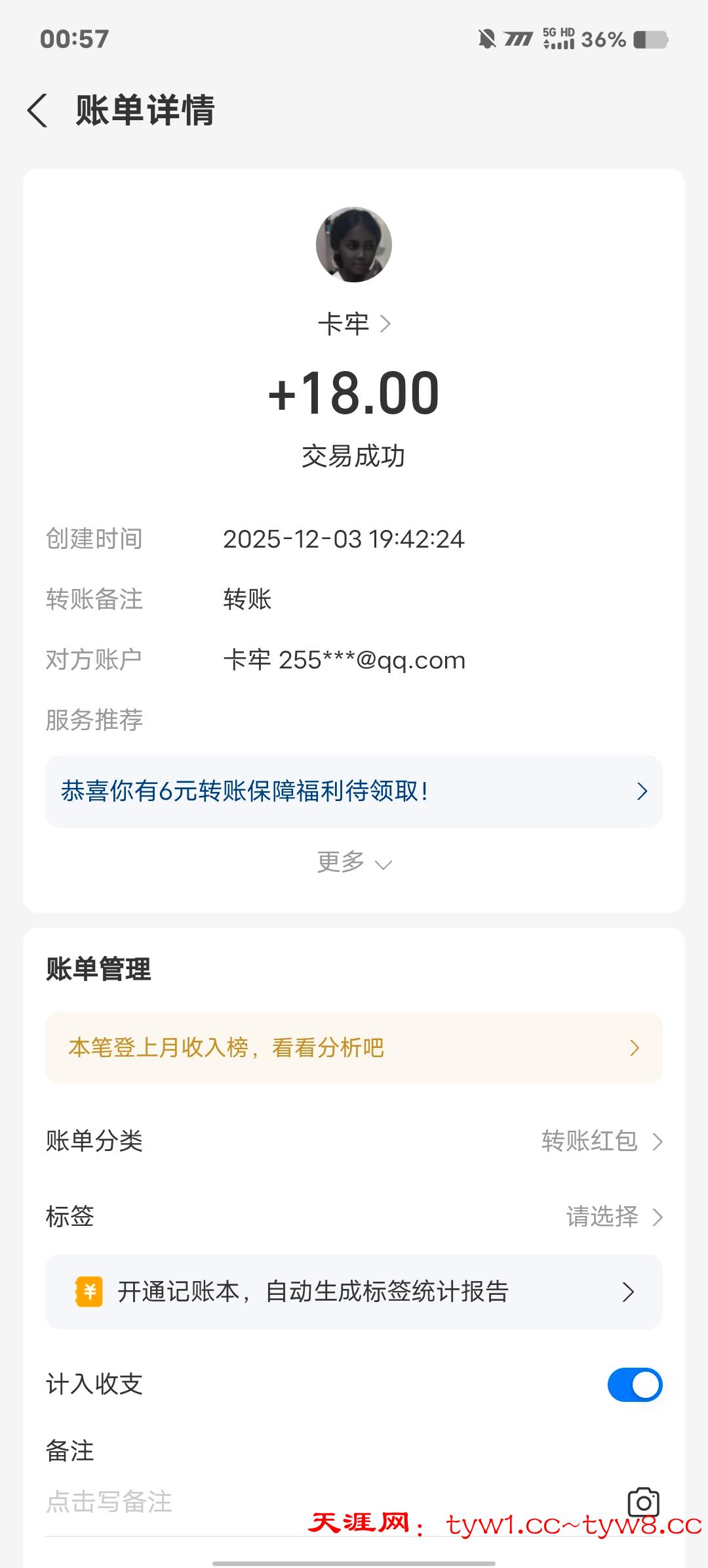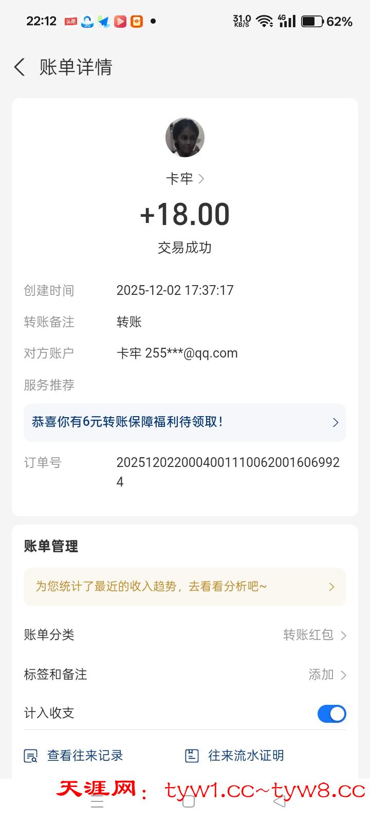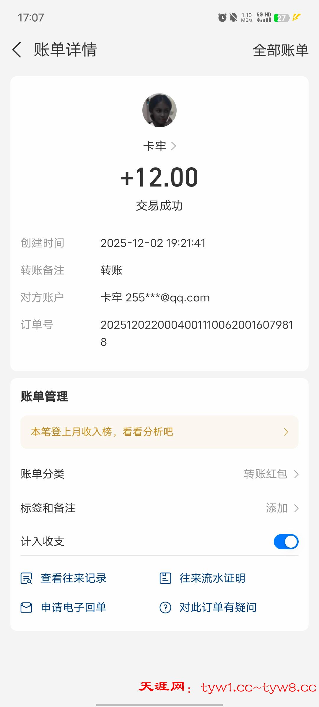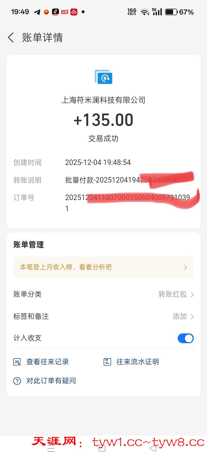 12.3到账,感谢天涯。