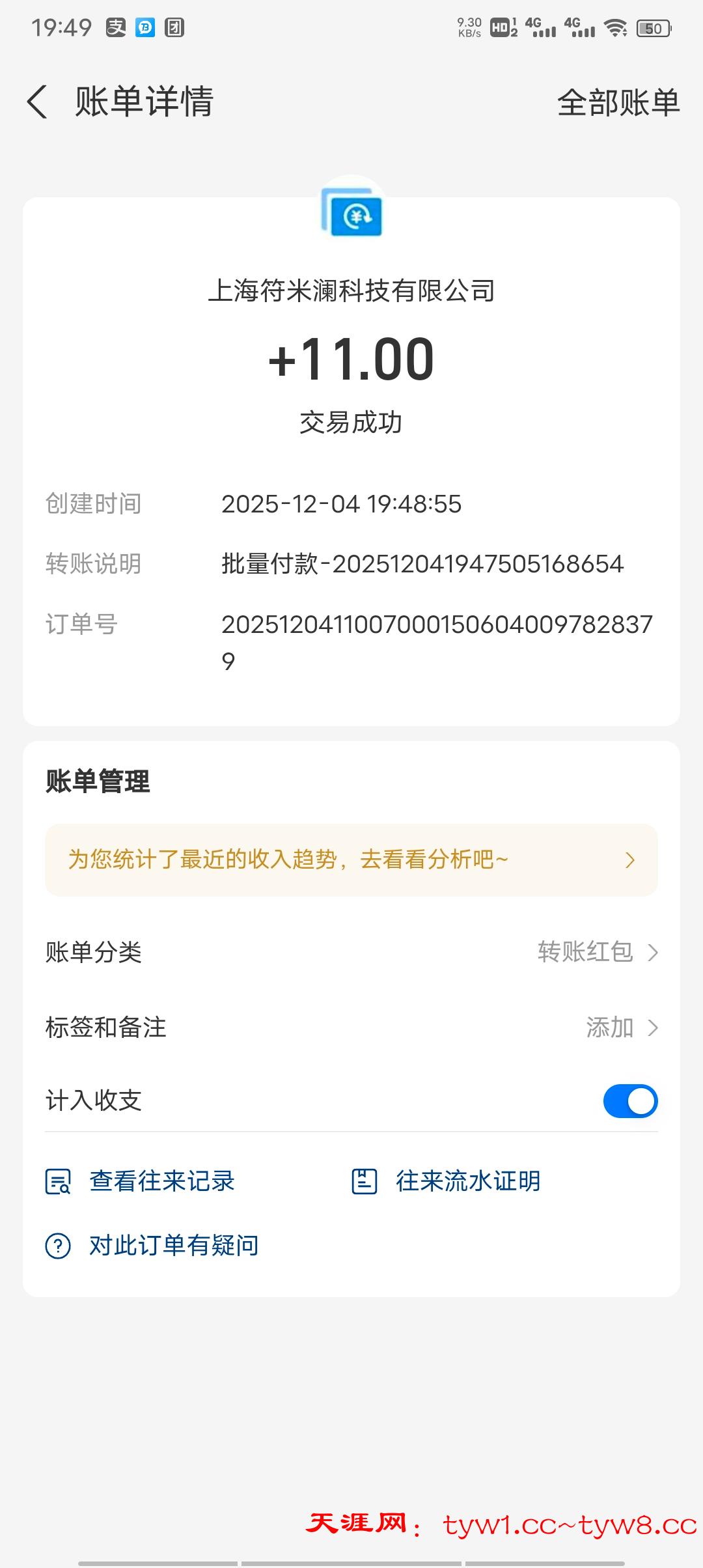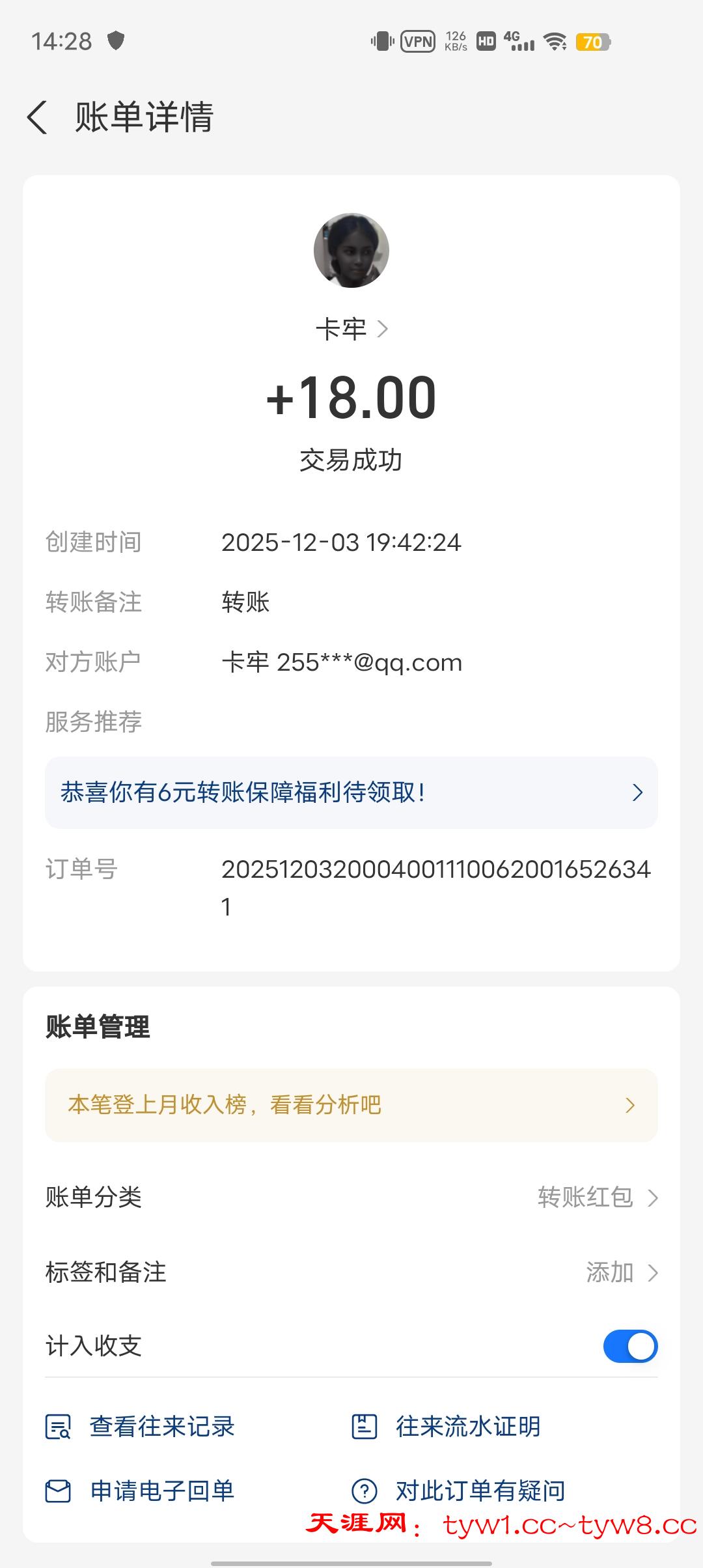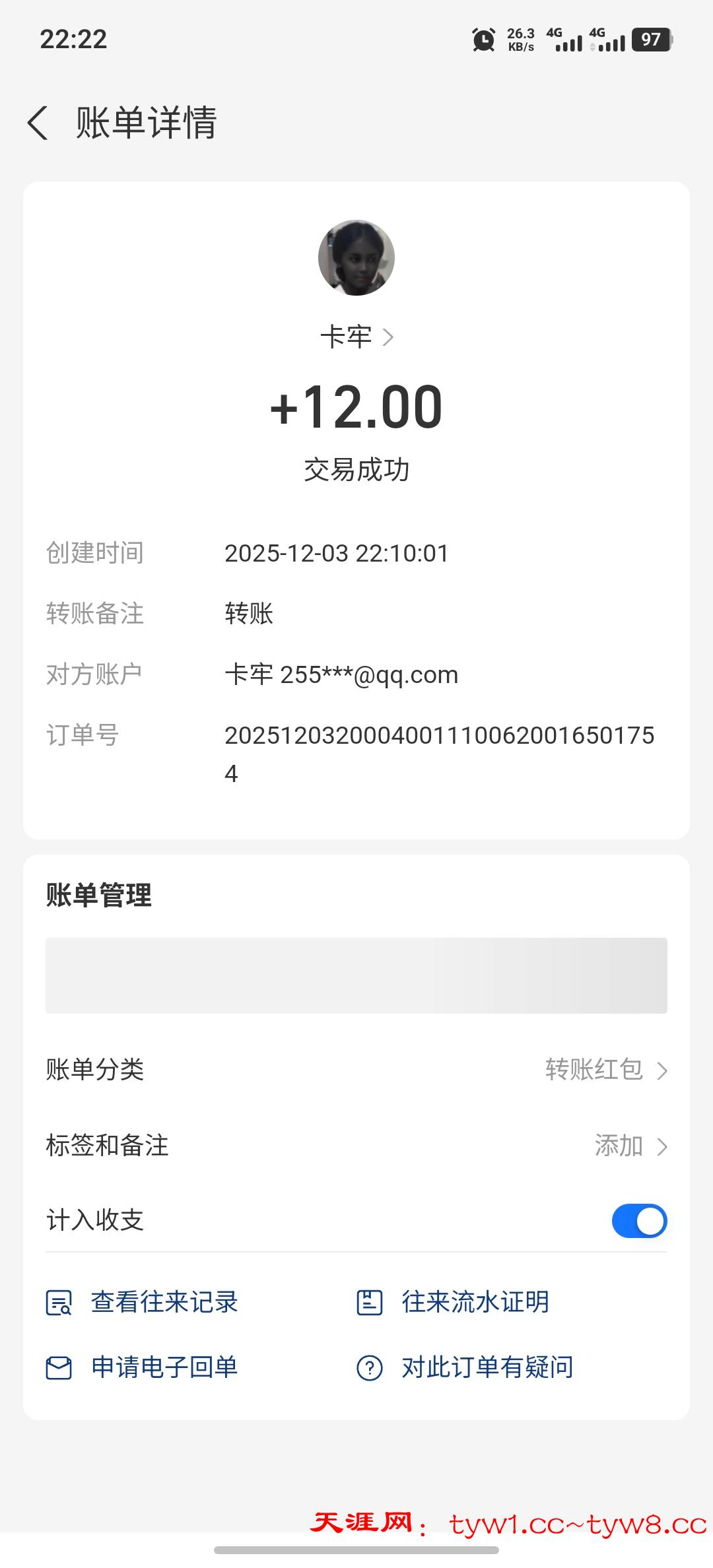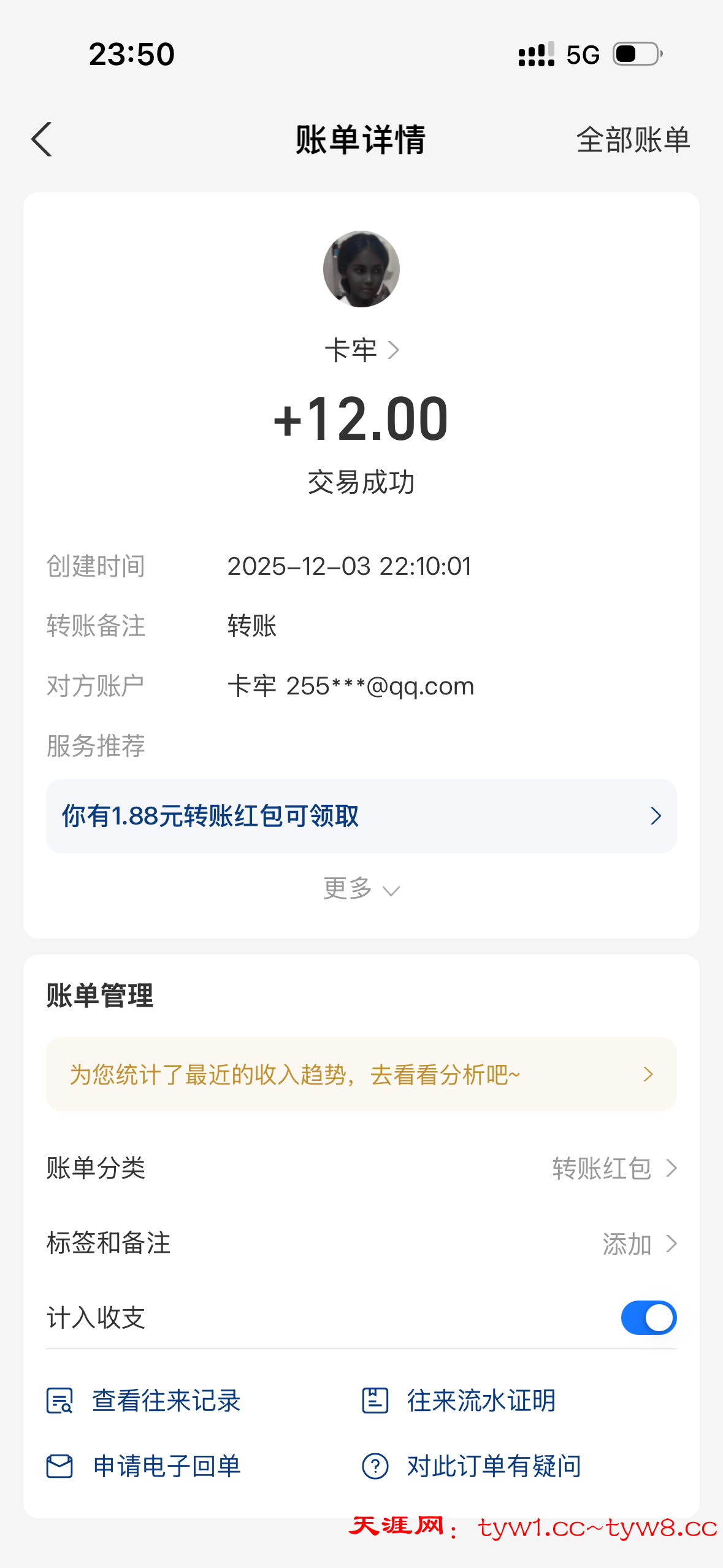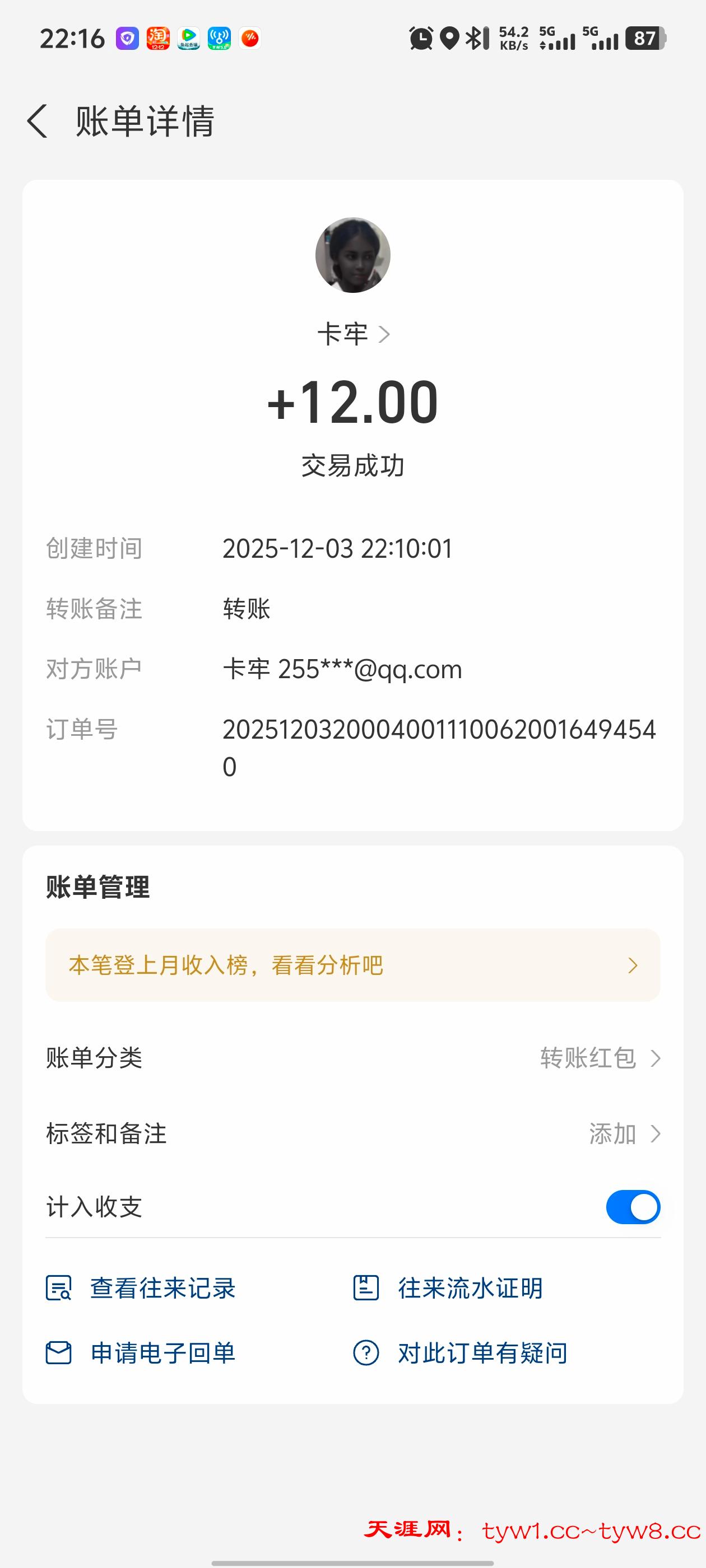 12.3到账,感谢天涯。