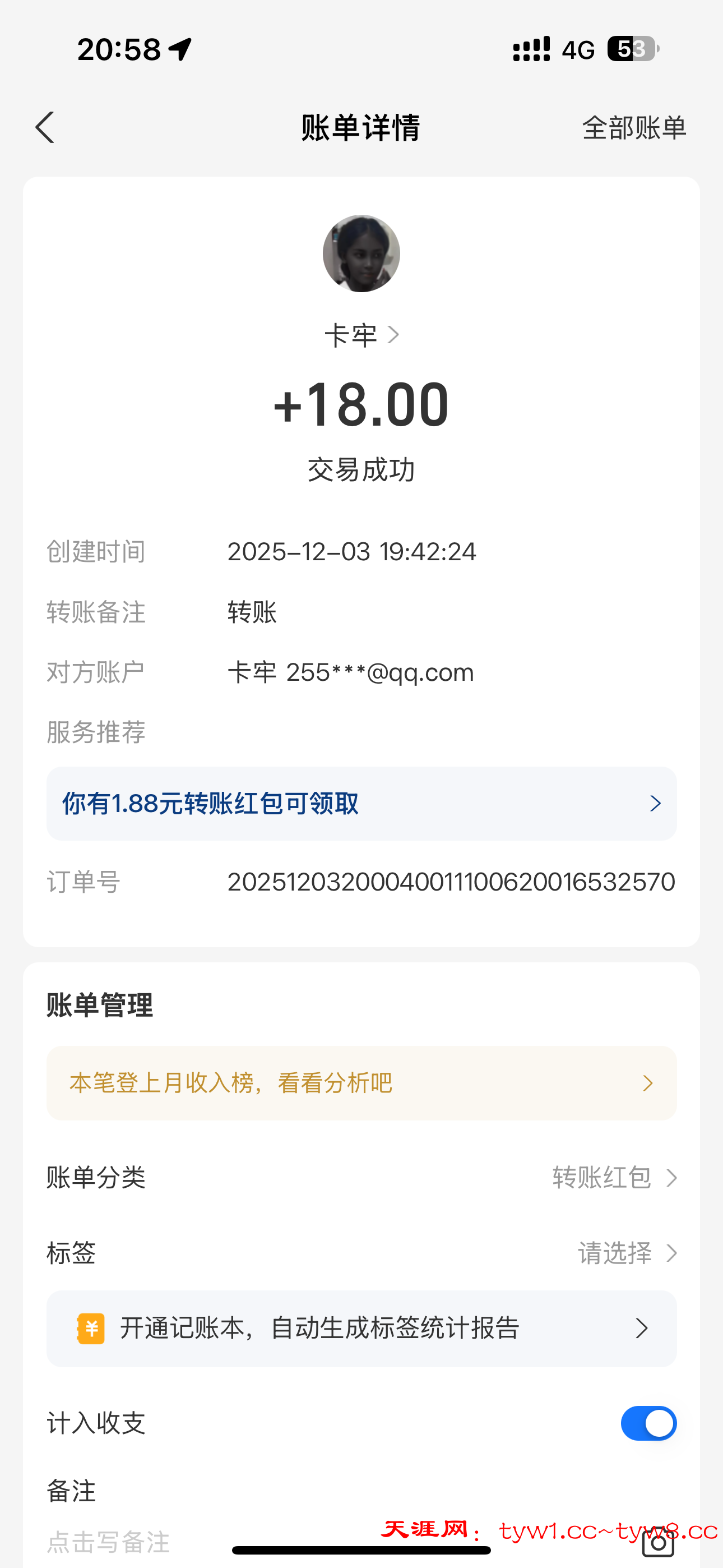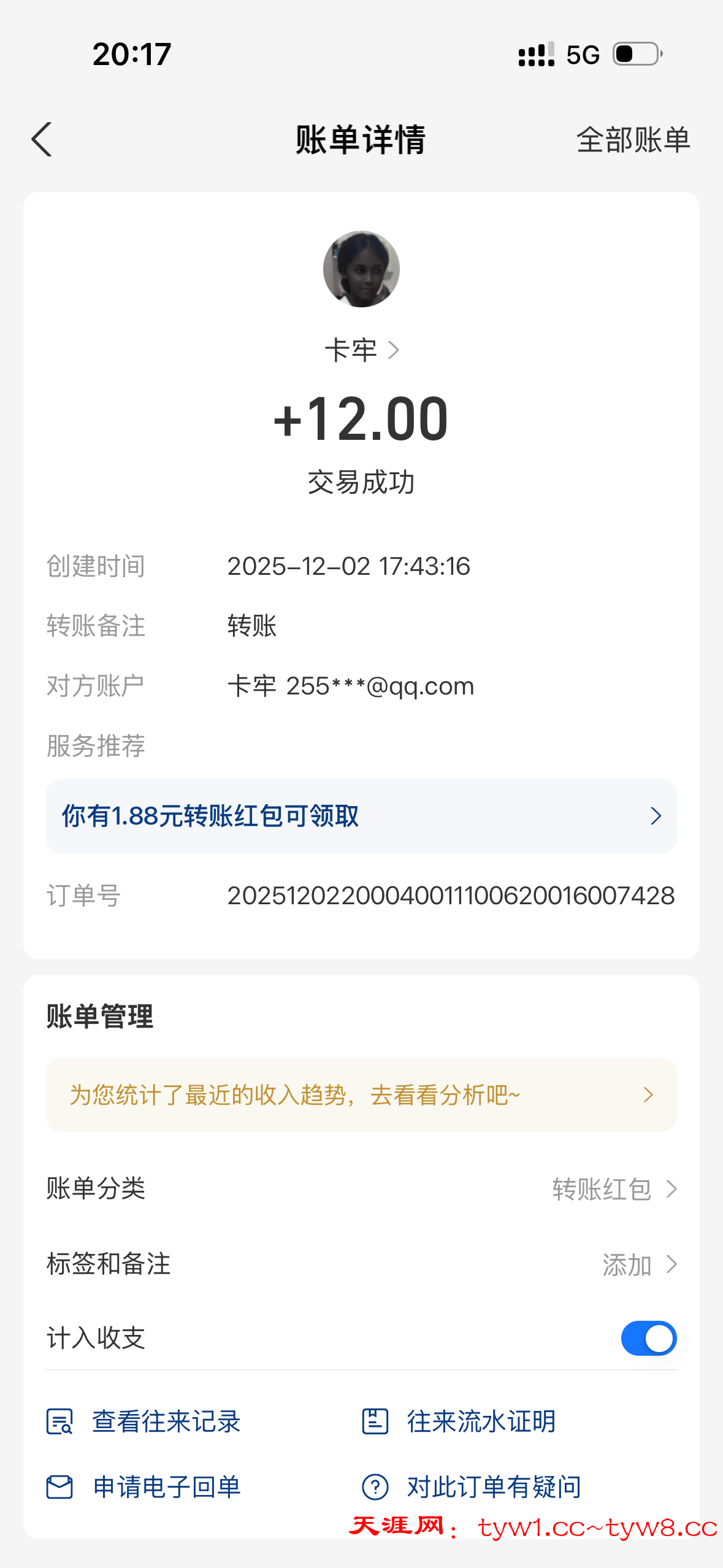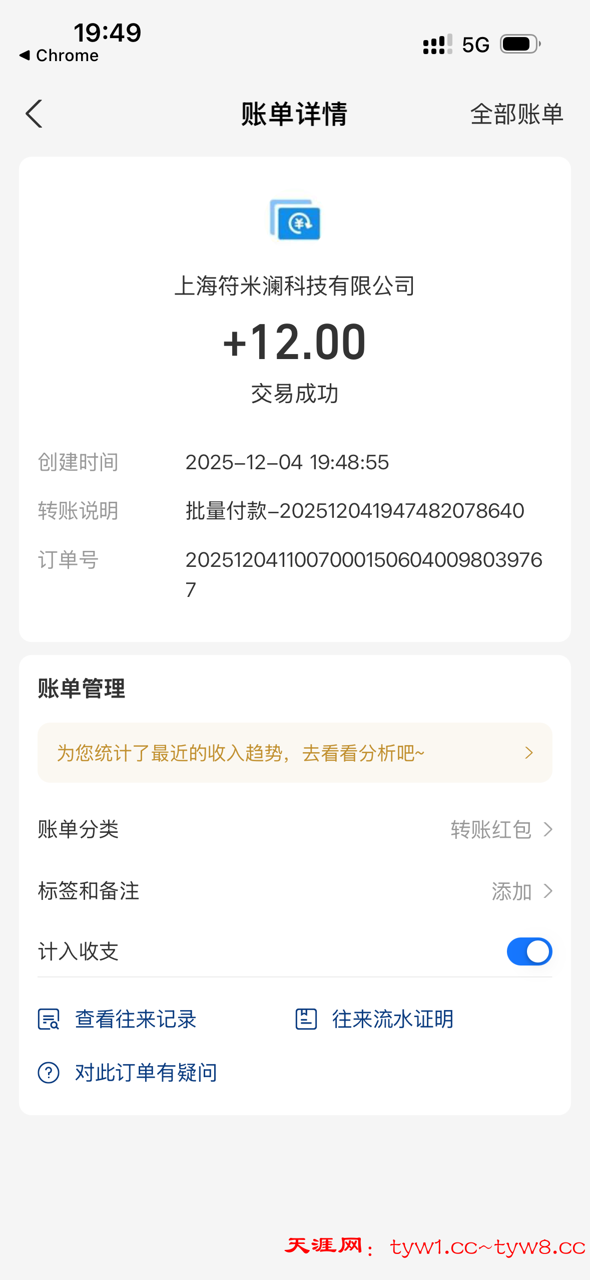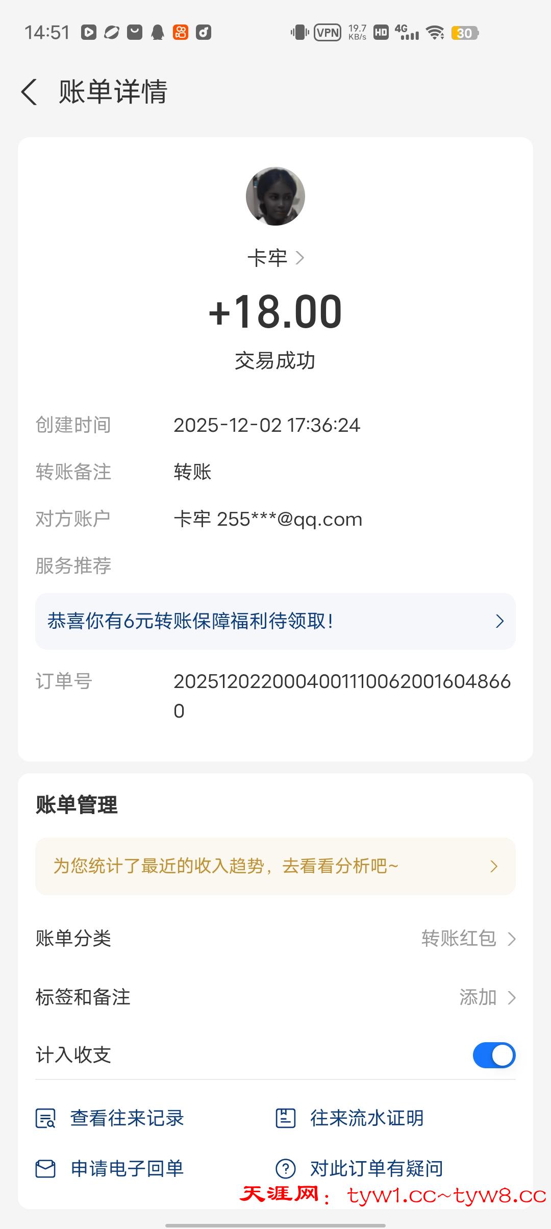 12.3到账,感谢天涯。