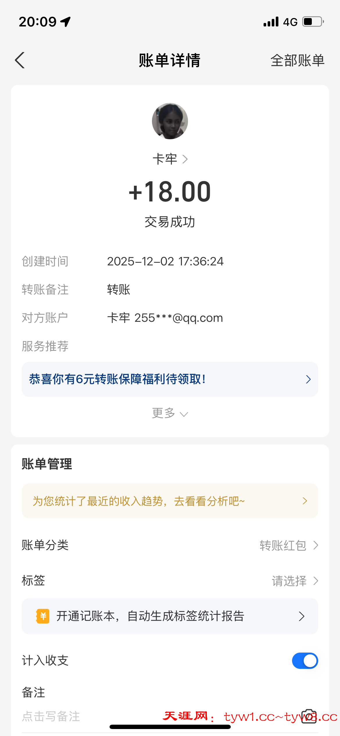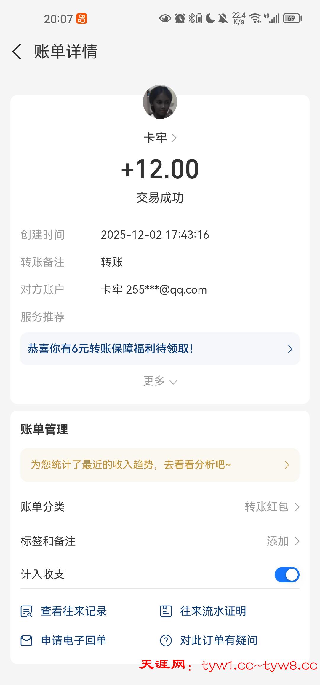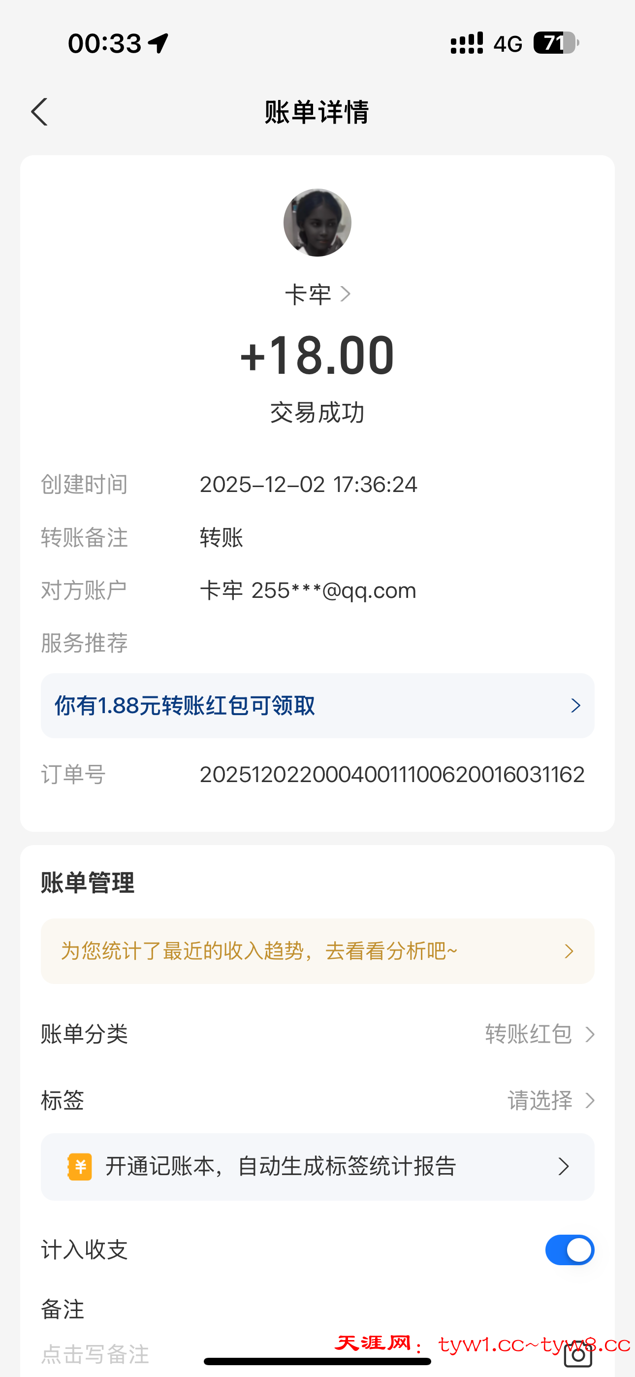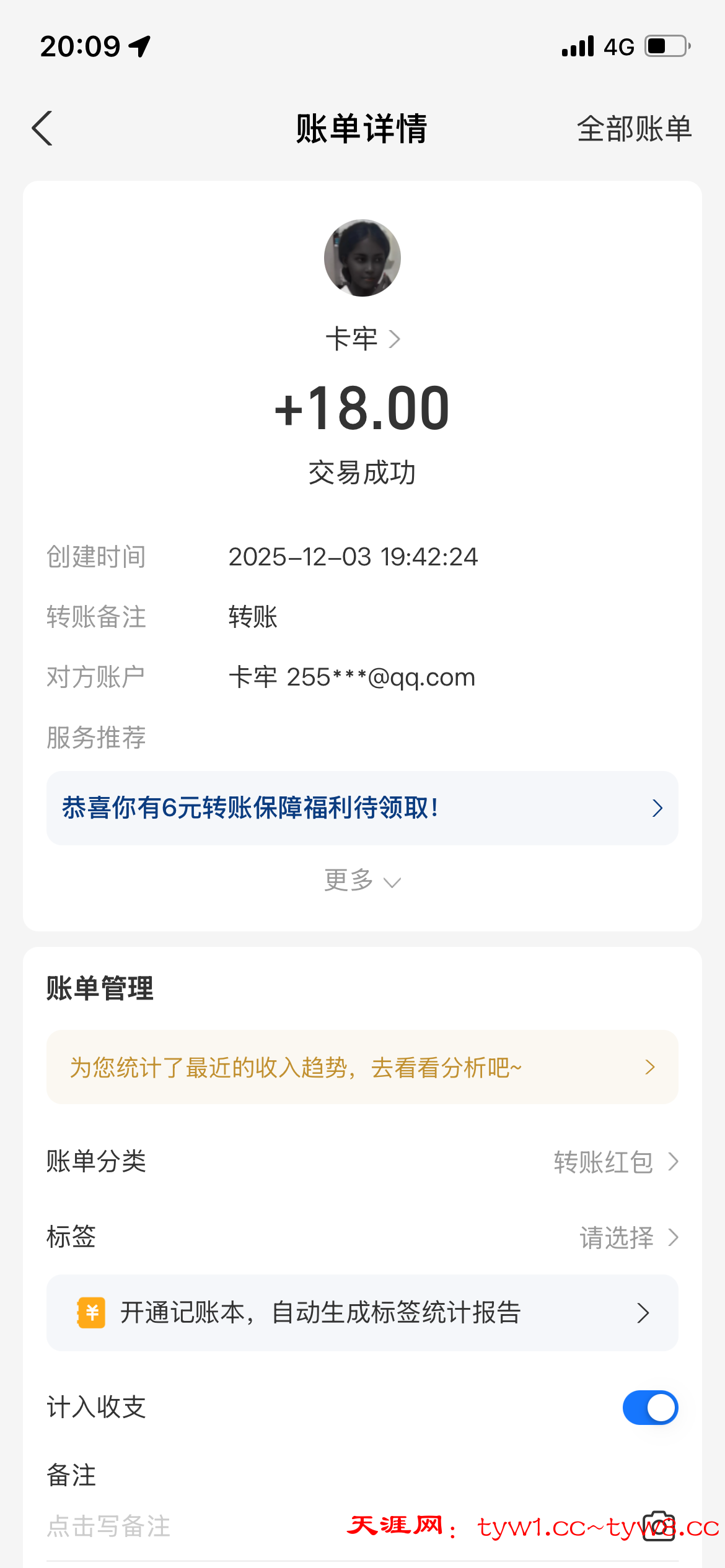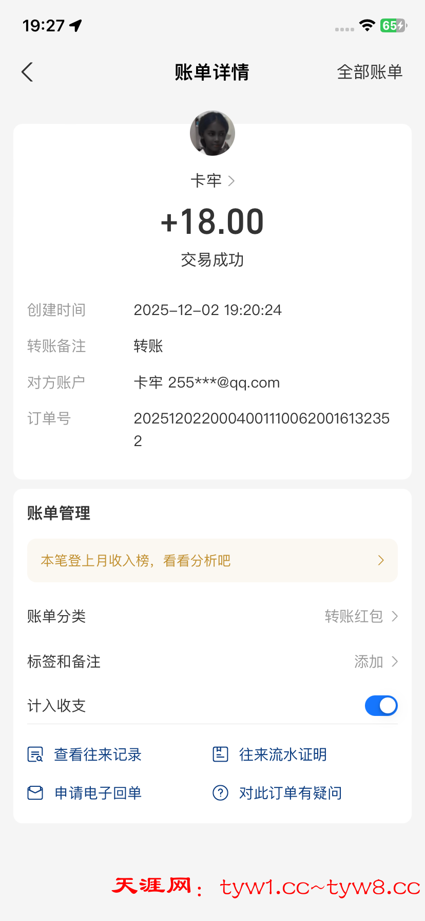 12.3到账,感谢天涯。