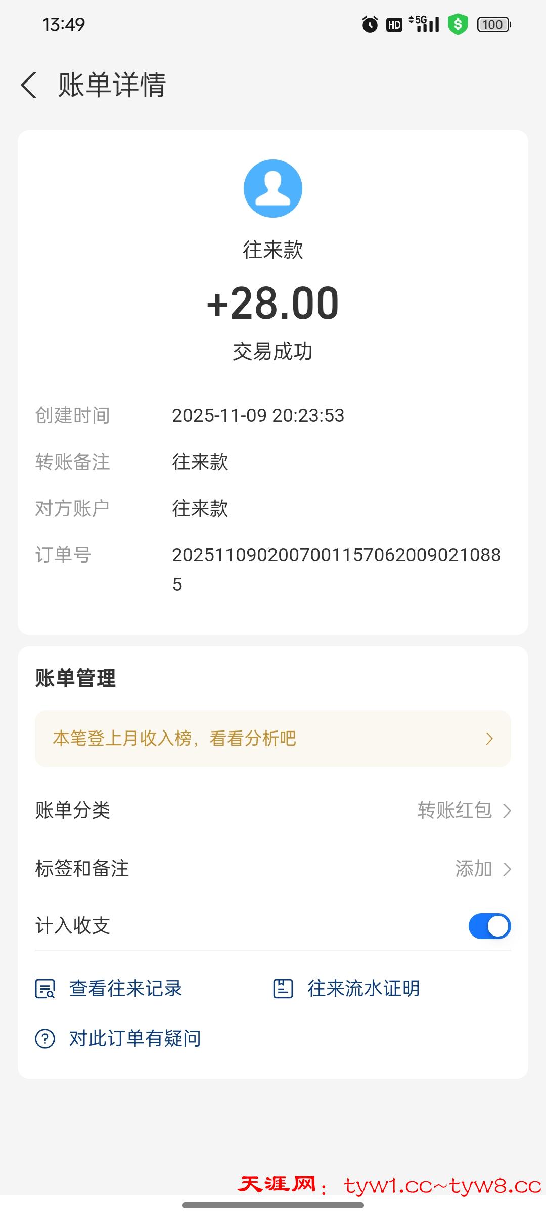 到账了