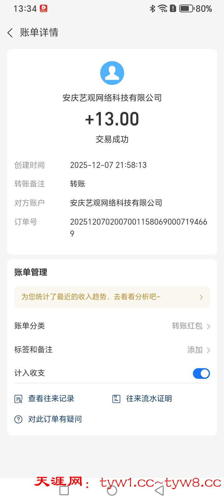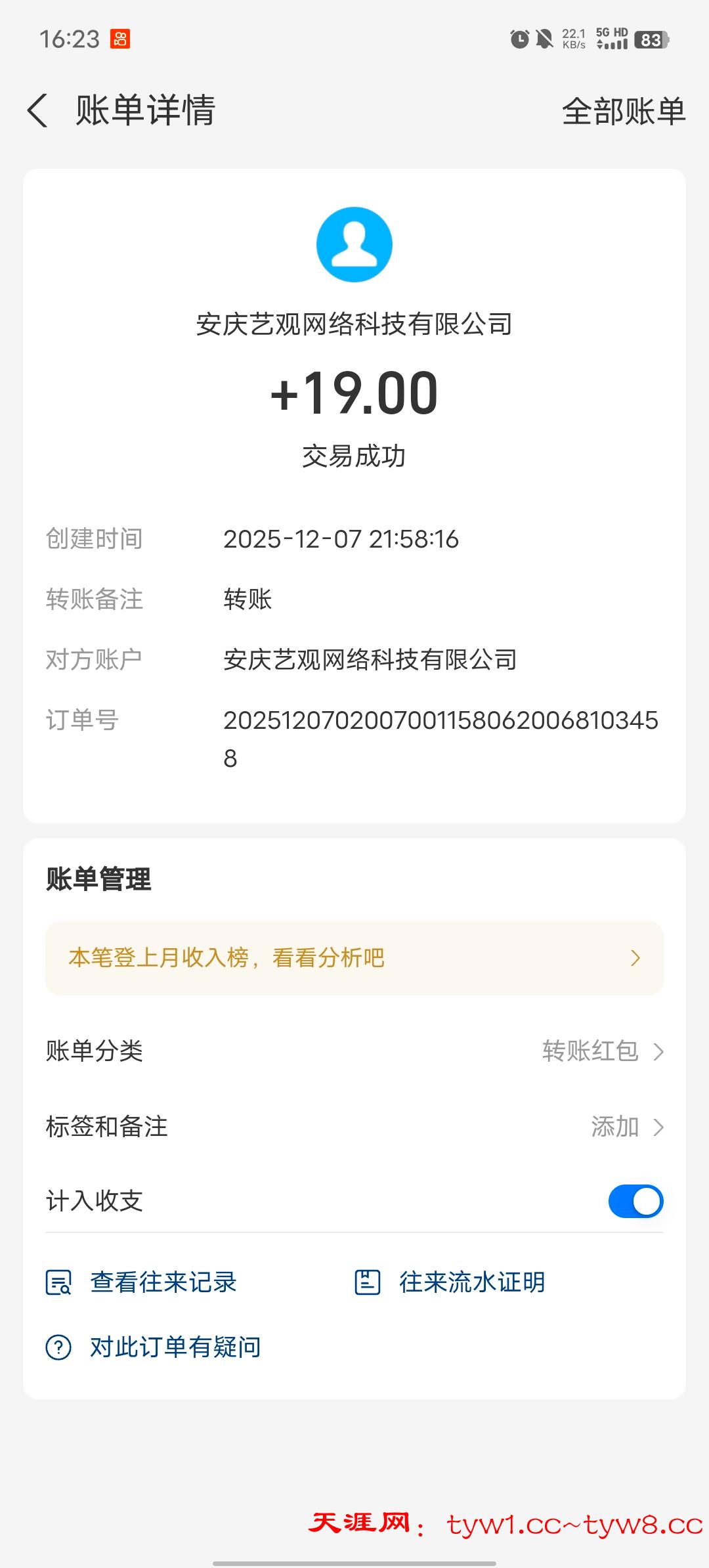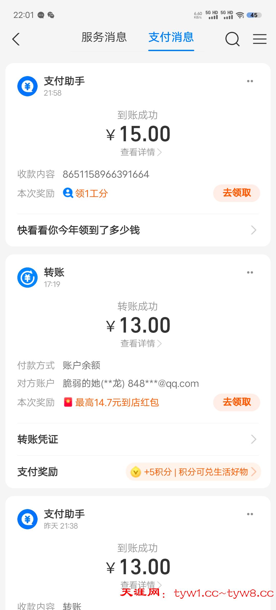收到了感谢天涯社区