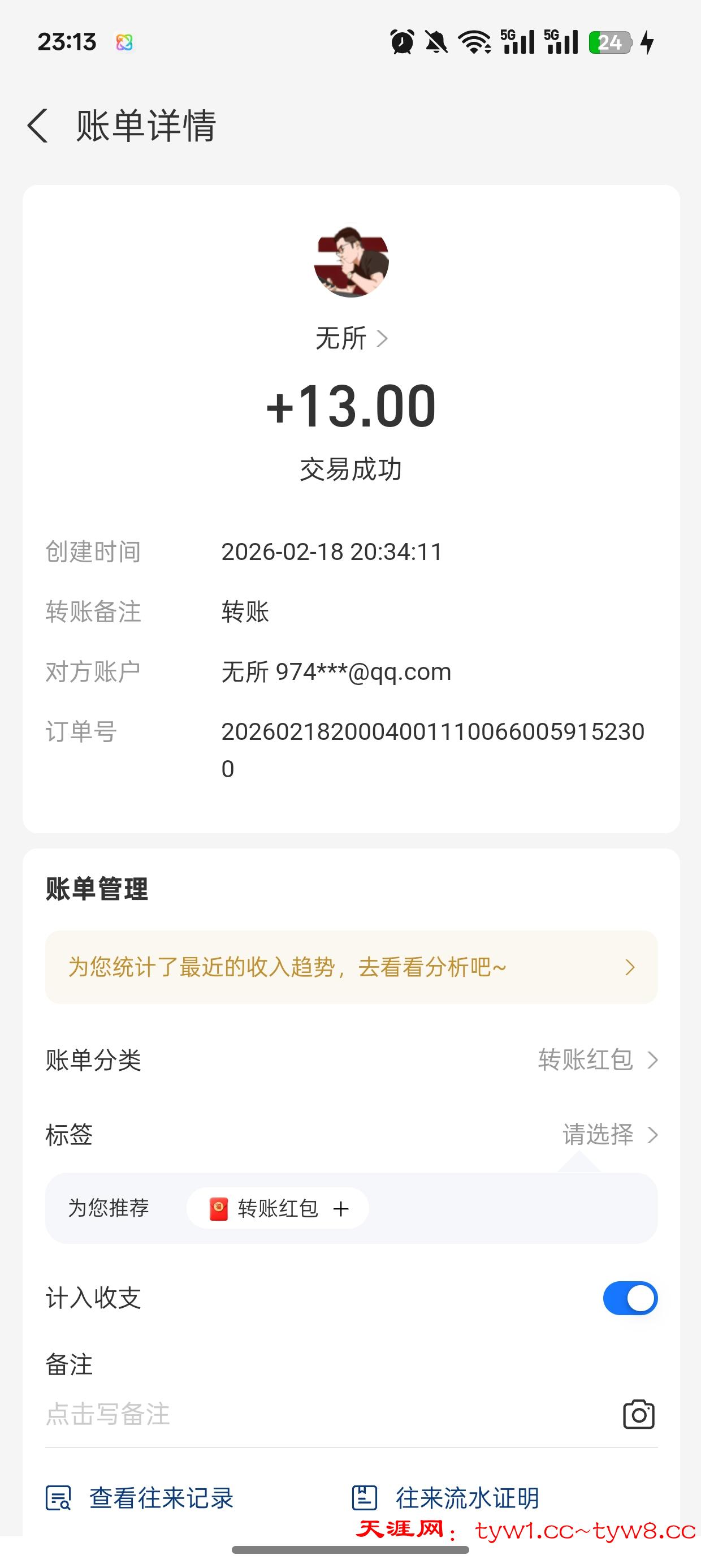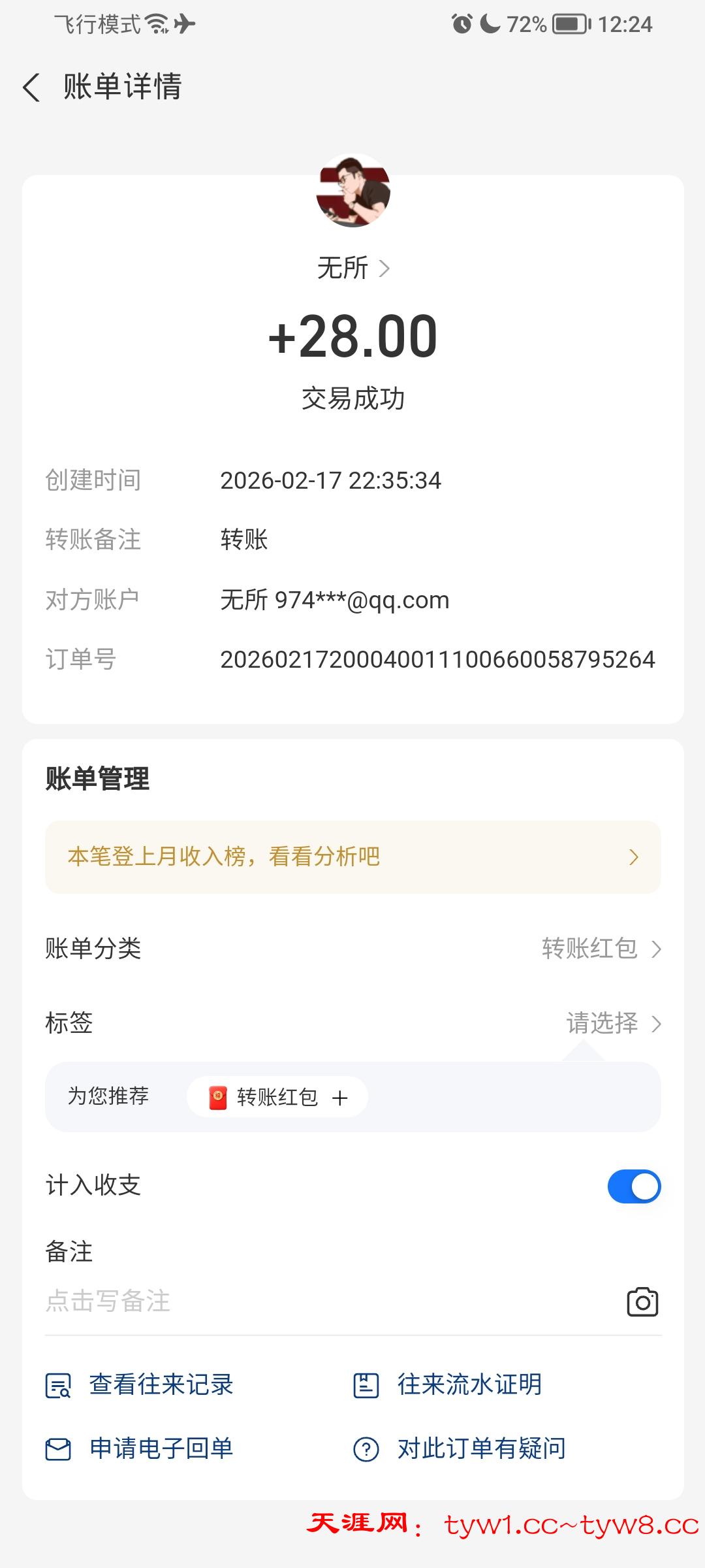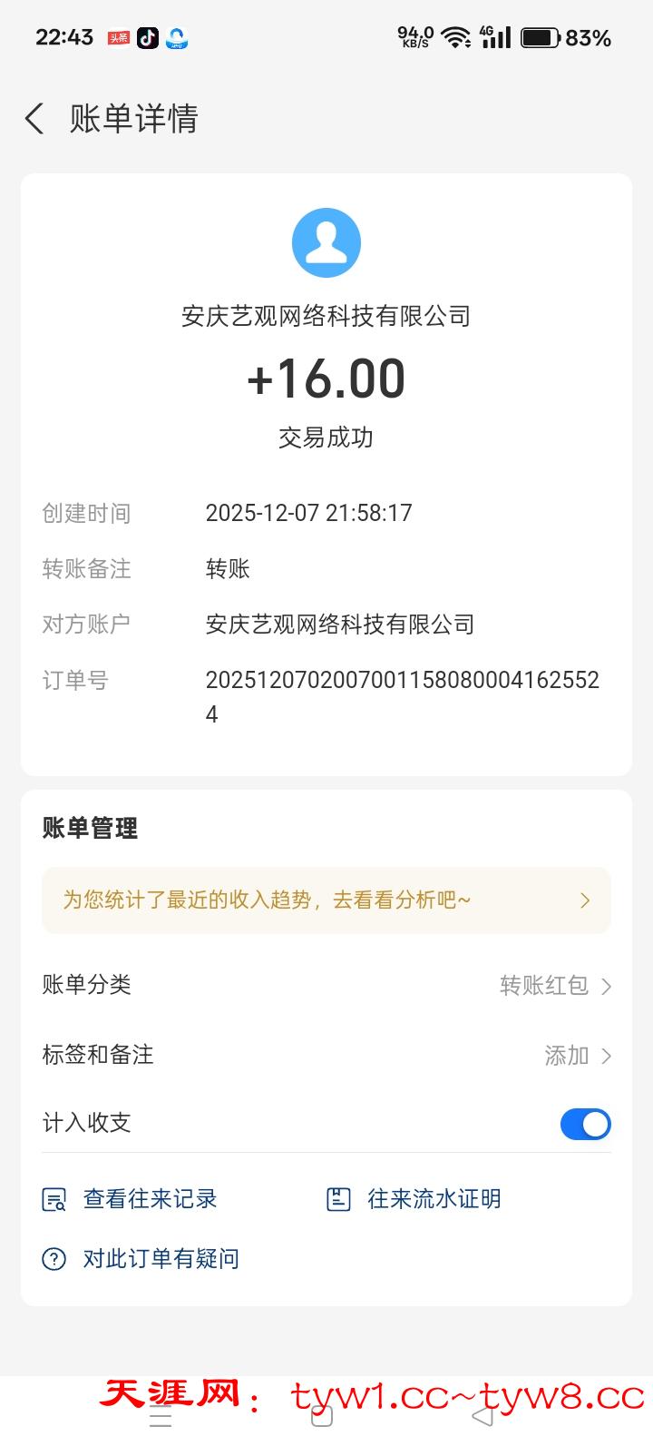 收到了感谢天涯社区