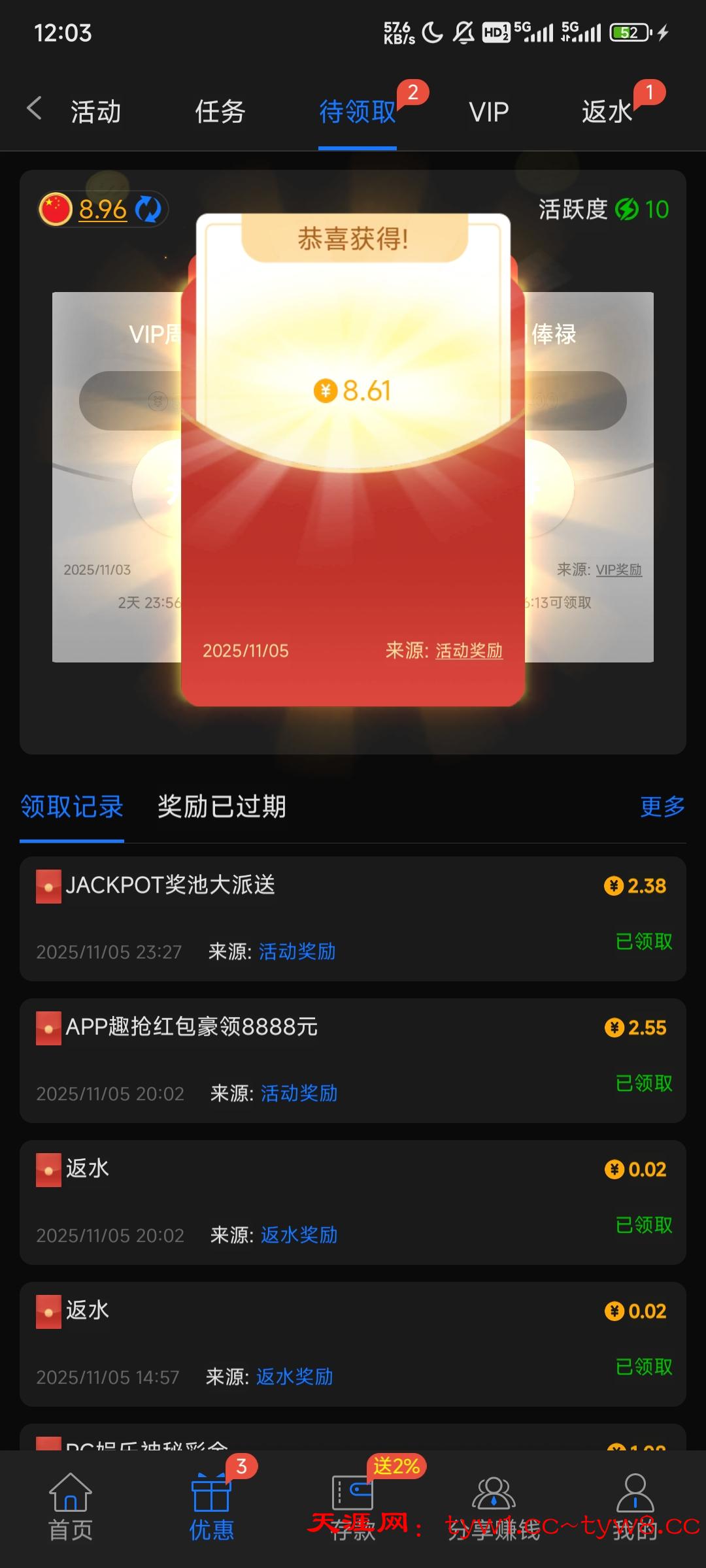 每个人领到都不一样自己去看看有没有