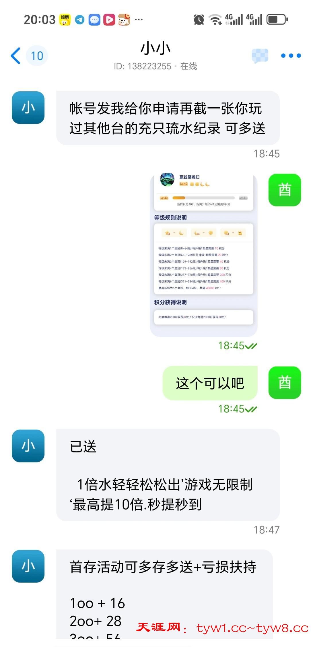 打开联系蝙蝠或者三条客服领取他会给你发注册网址和邀请码 给他一张其他平台的流水截图就行我给的是28圈等级截图送了48一杯流水提款最高提彩金10倍我没打出来 赶紧去现在应该不查