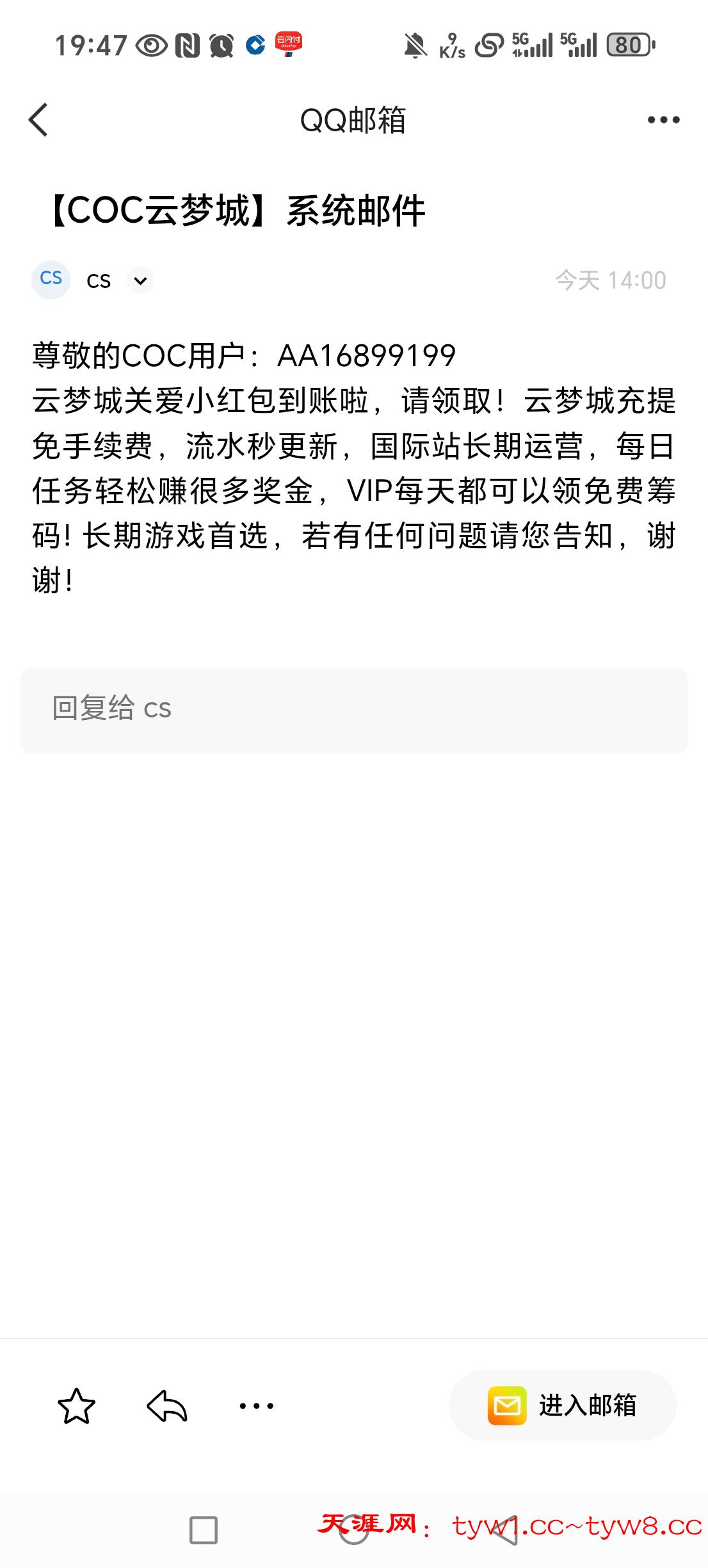 姨姨的直播彩金十次了一次没有出来过,不知道这个台怎么回事,今天看到邮箱送彩金,上去看有2u,我是充值过的
