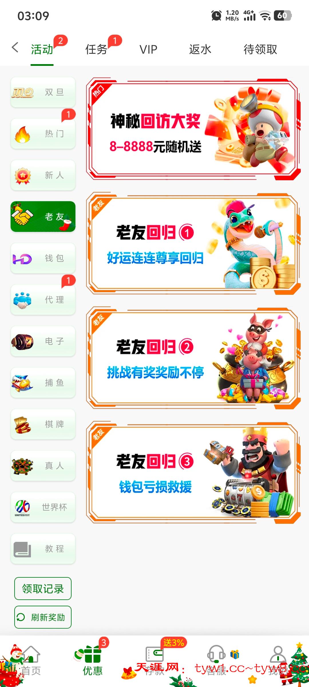 优惠里面点老友第一个,之前玩过去试试