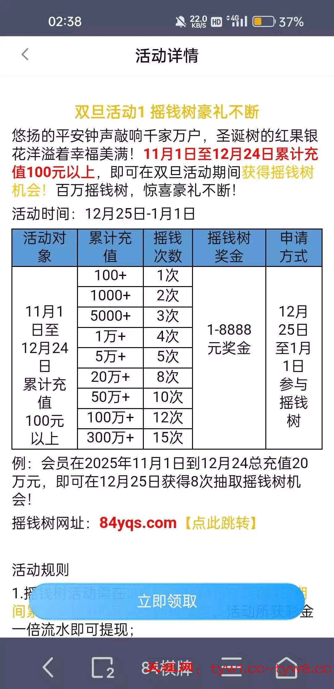 11月1号到12月24号累计充值100就可以参加 链接 84.bet