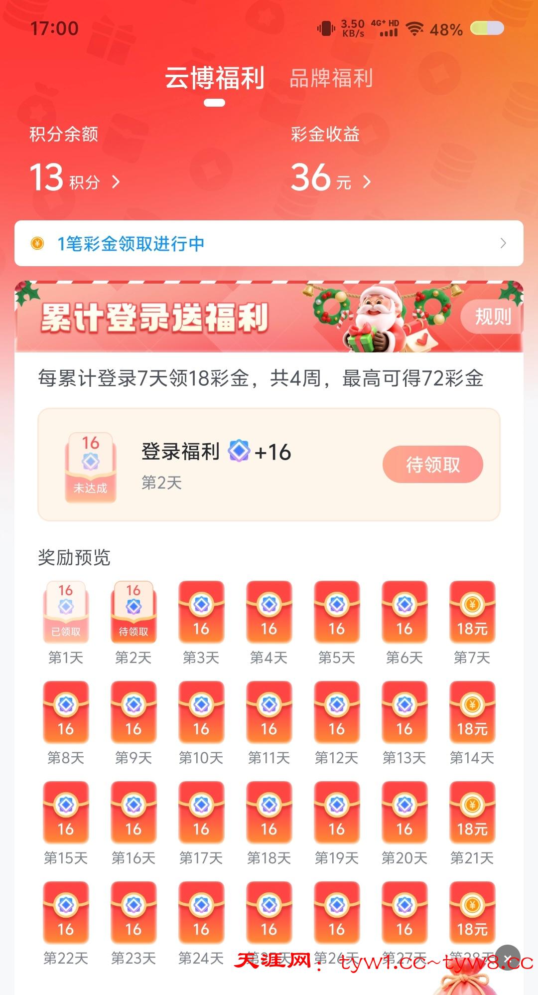 下app找个里面没玩过的台注册绑卡秒16,再去云博福利那申请36,玩过云博的可以去签到1周18共4周,消耗888积分给18,共可以撸142