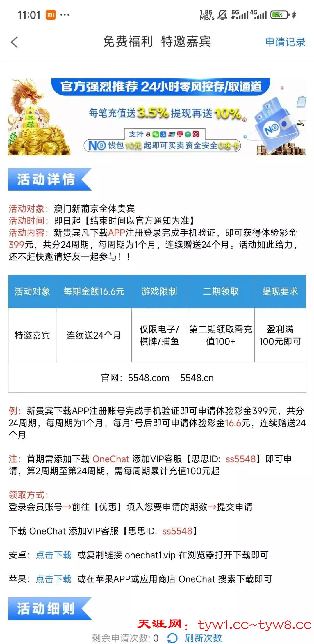 注册送16.6直接申请也行 我就是直接申请的 有的老哥去看看网址5548.com 图片上也有 没打出来