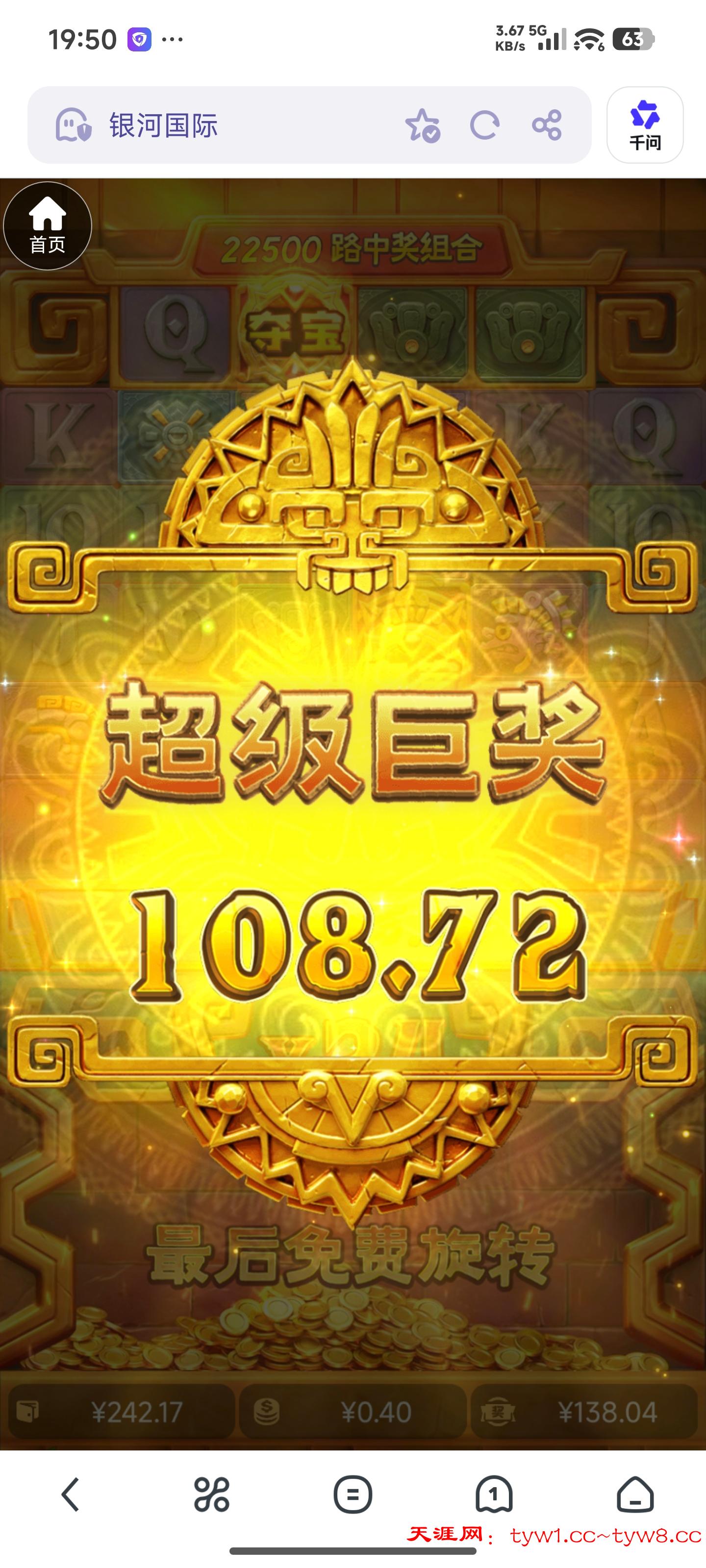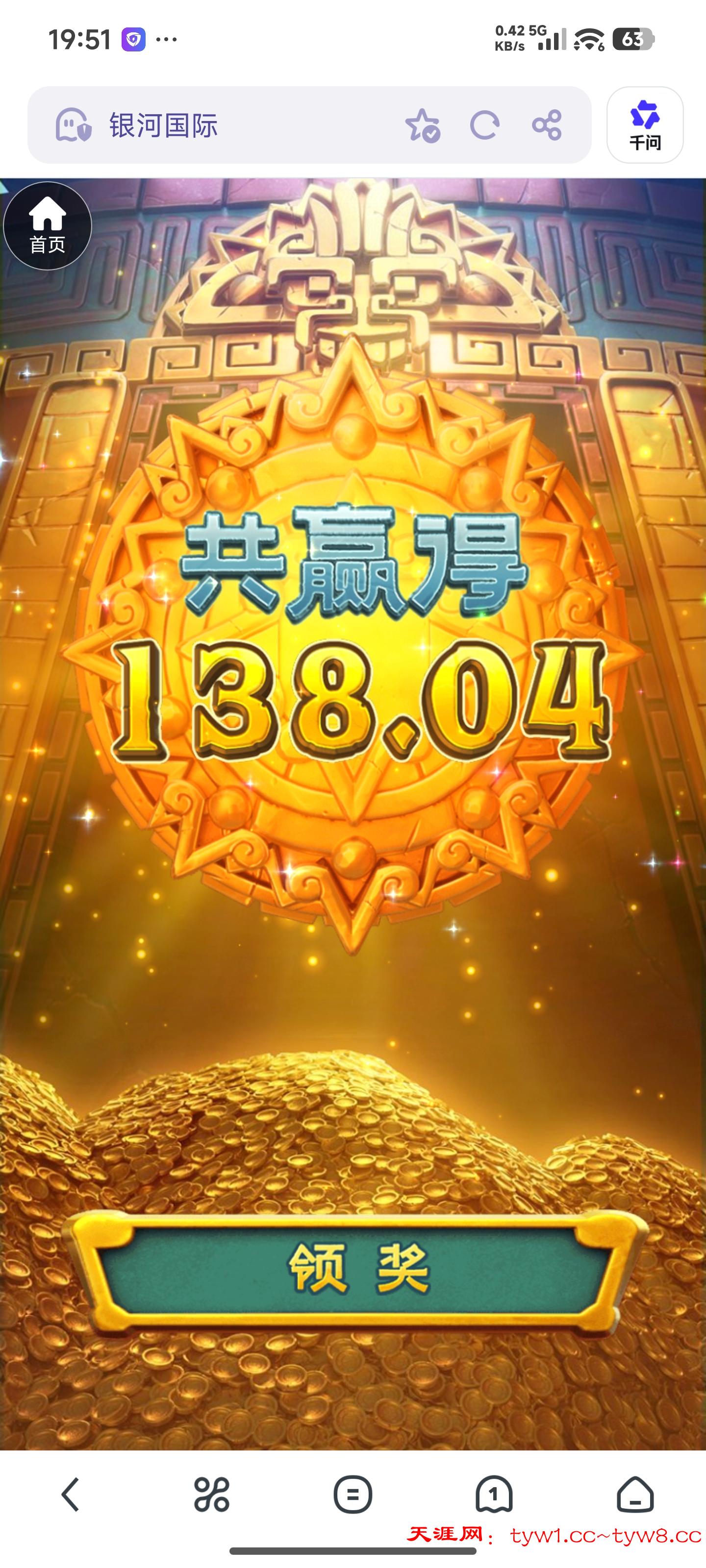 189银河一块钱周俸禄打两毛麻将1爆了100+,然后又四毛的夺宝黄金城又爆了138