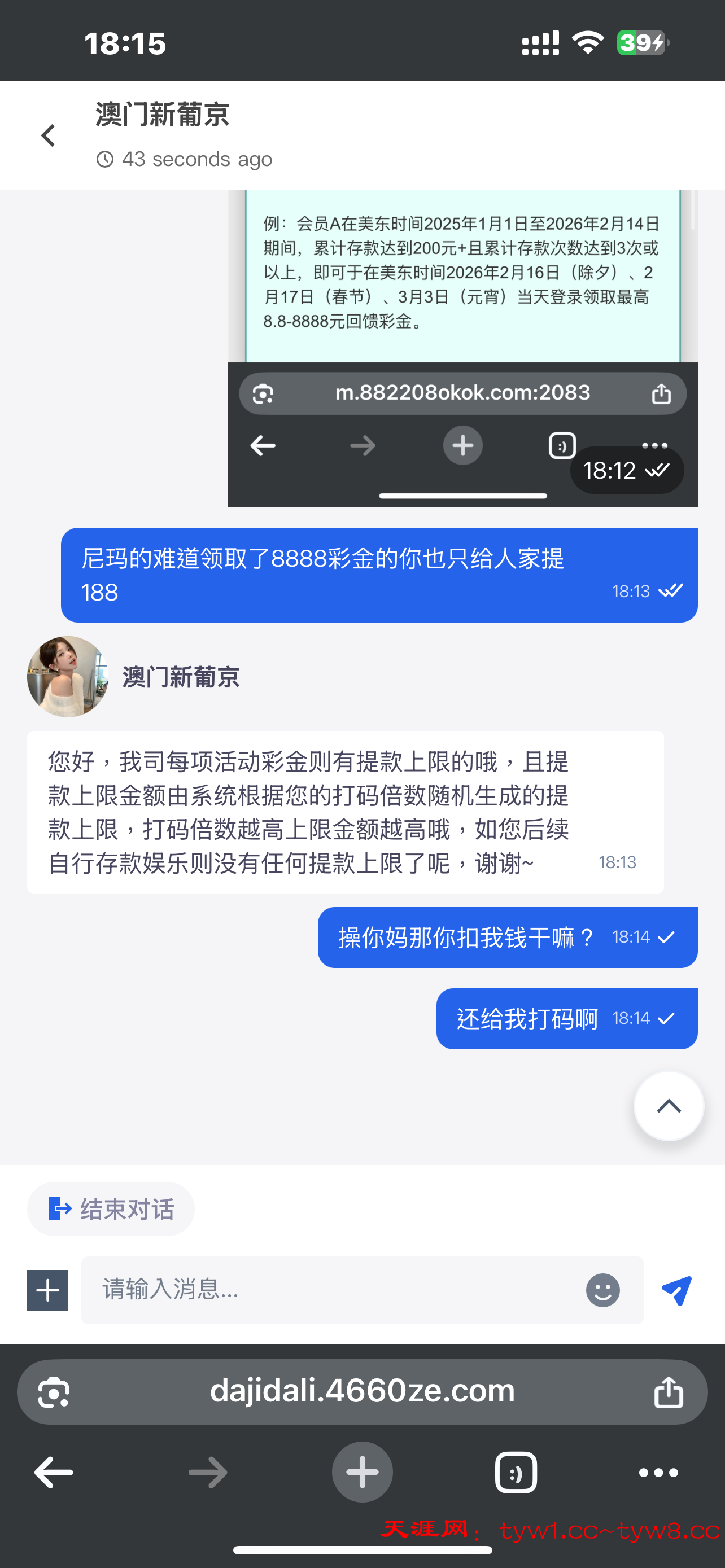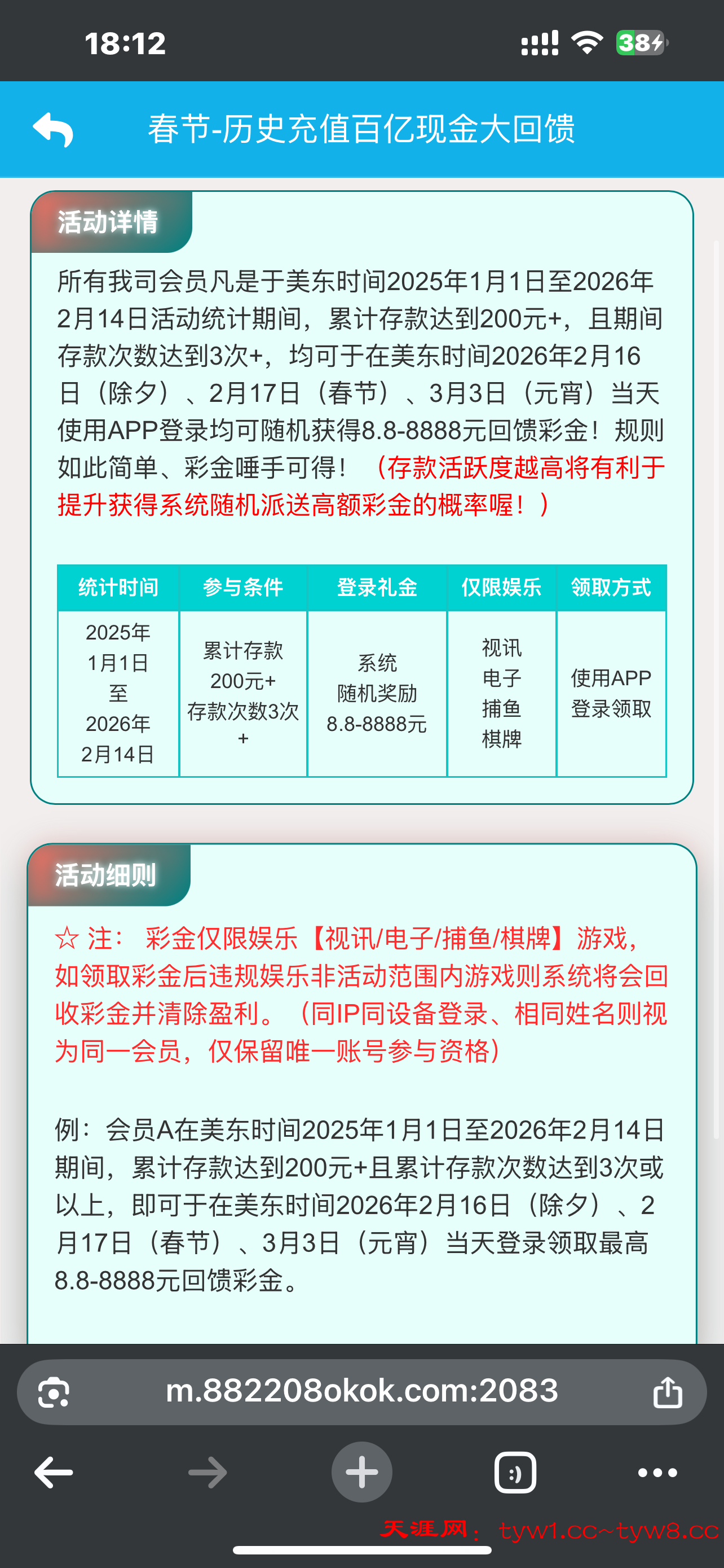 操他妈活动送18-8888,18块钱爆了2000他说提现上限188,后面又说随机生成提款上限,操他妈老子还充值了一千多块钱这平台真没格局,大家注意别玩,狗日的提款上限188那8888红包的玩鸡巴
