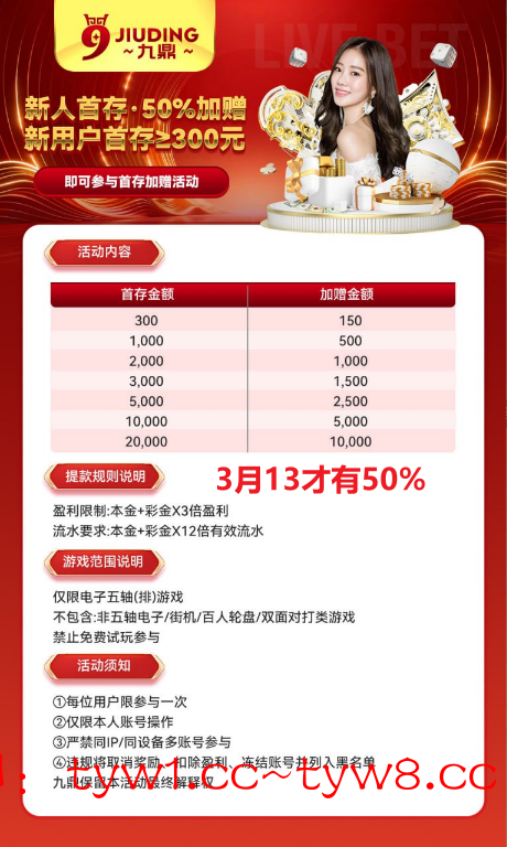 大额首存加赠50%(3月13有)