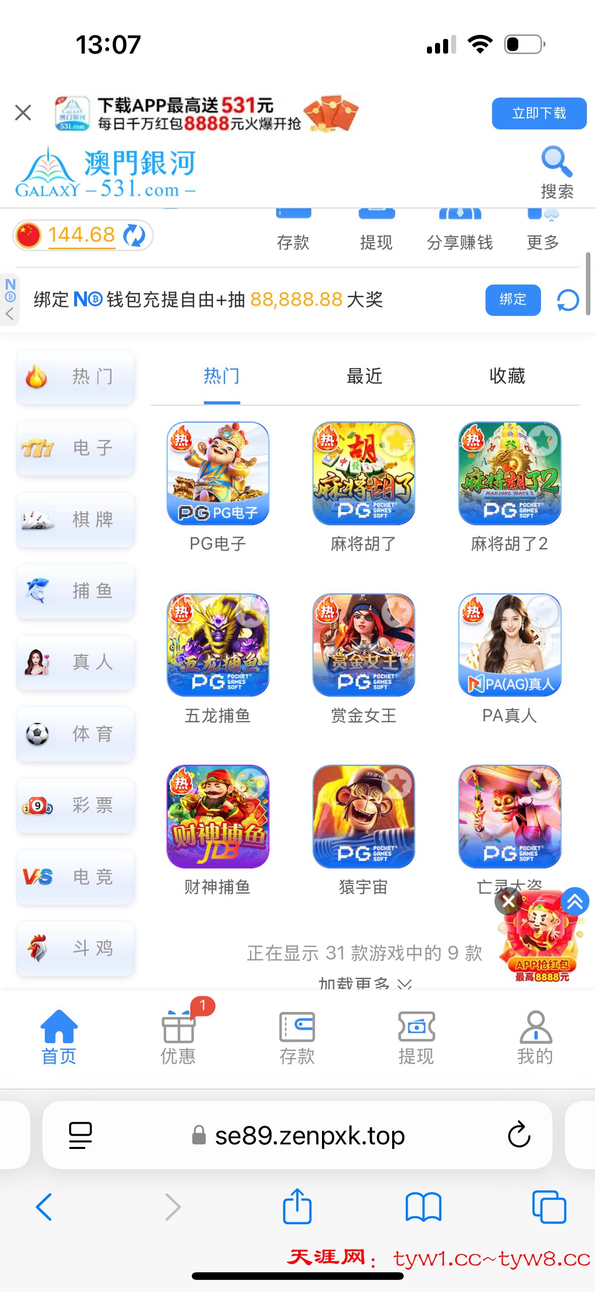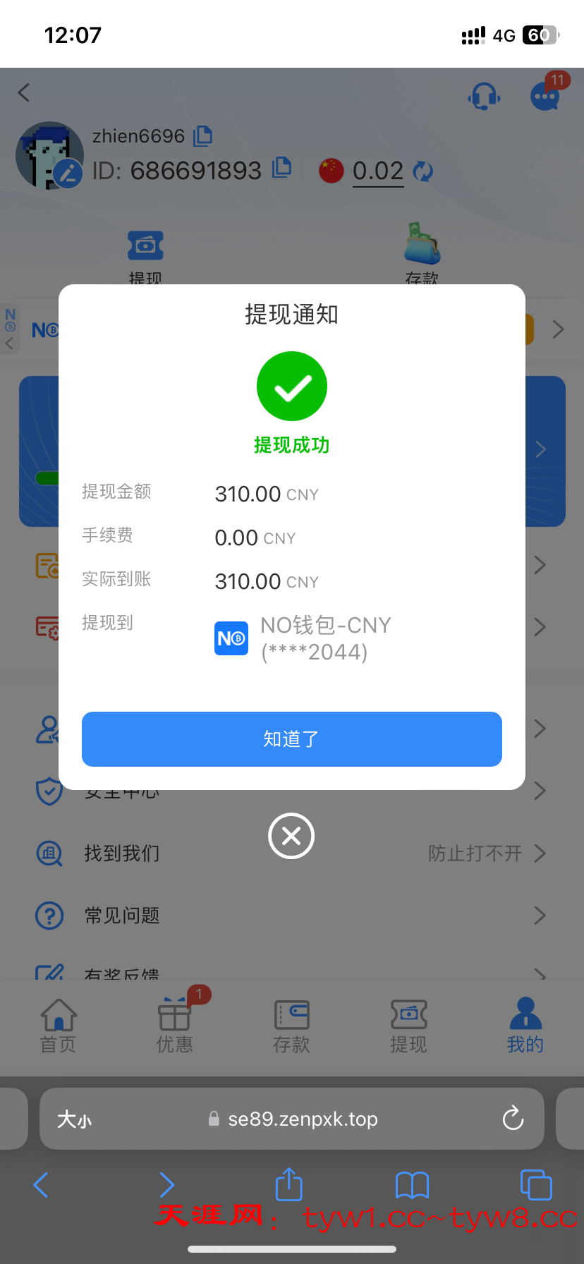 感觉要黑了,要充值才能领取,我充值了领了31打到了310,提现到钱能钱包,提现20分了还没到账