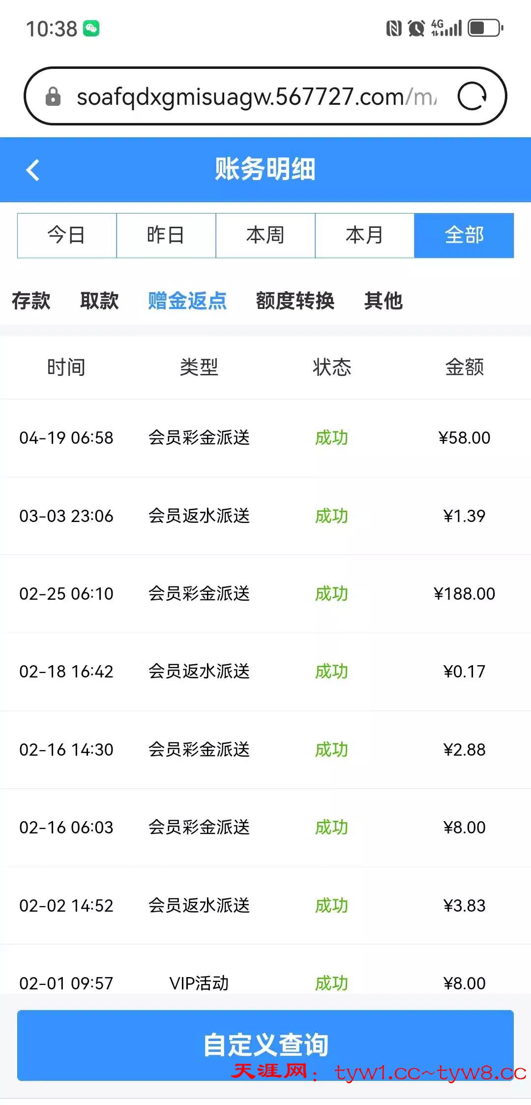 上次有个老哥发帖电话回访 上去领了188 今天上线又送了58两次都没打出来链接7030.com