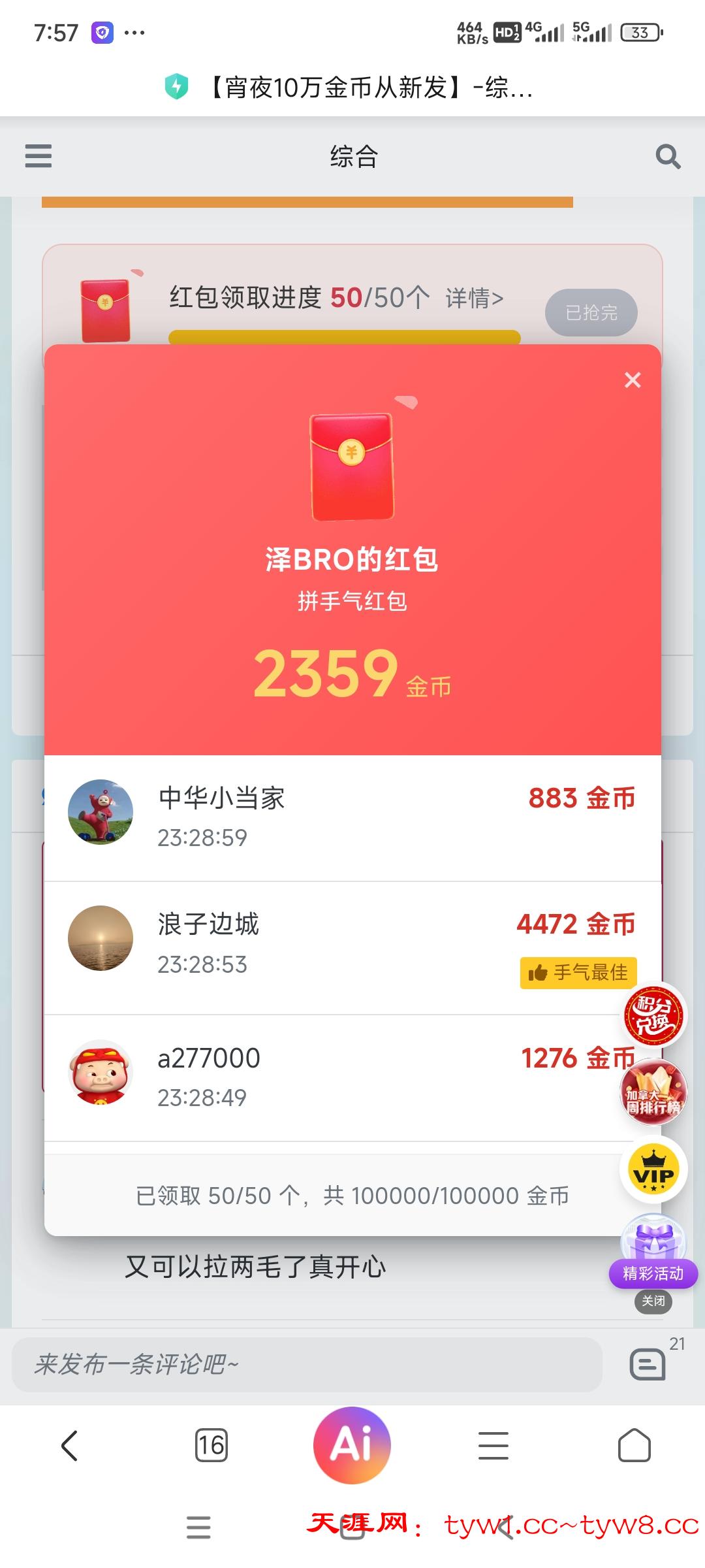 红包领取进度 50/50个 详情>