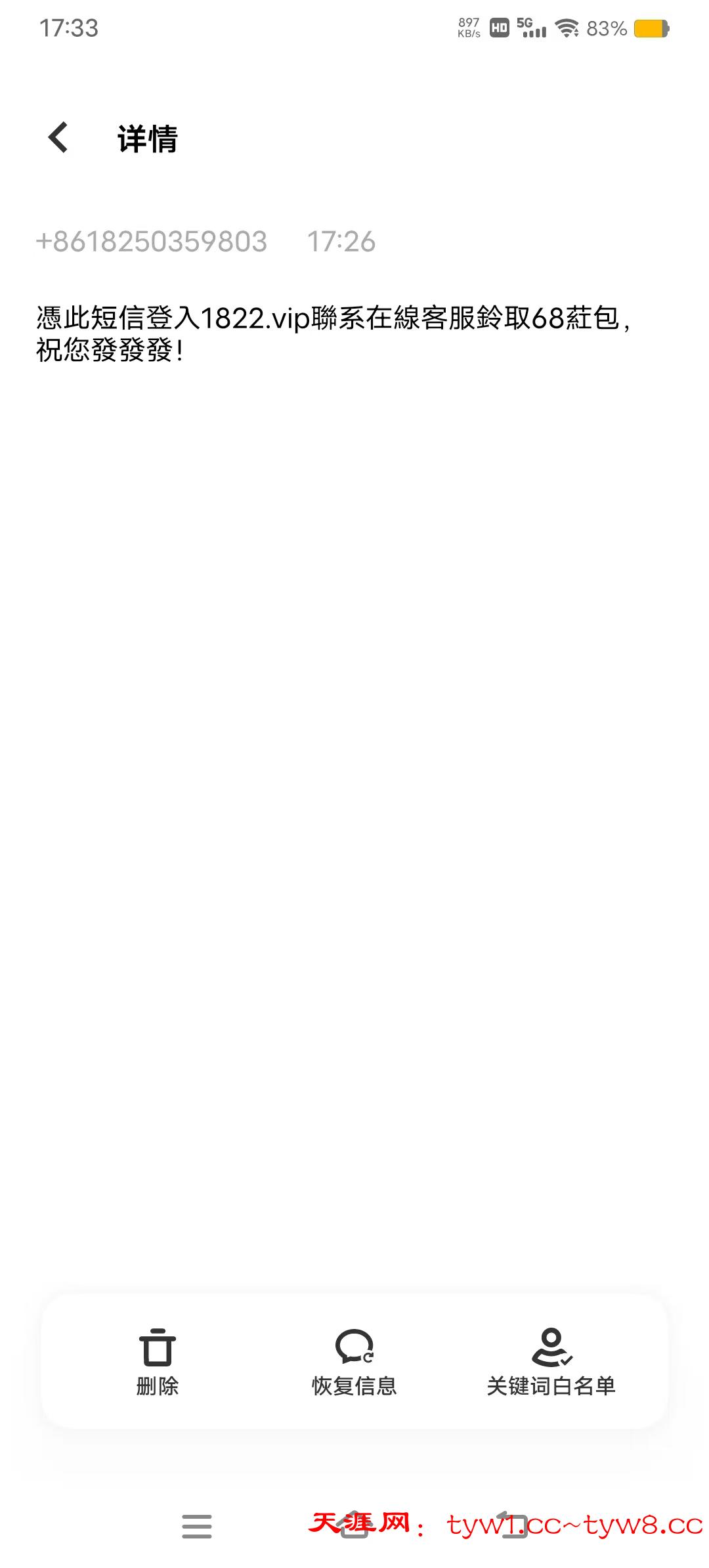 送68可以看看垃圾短信里面有没有这个短信,拿