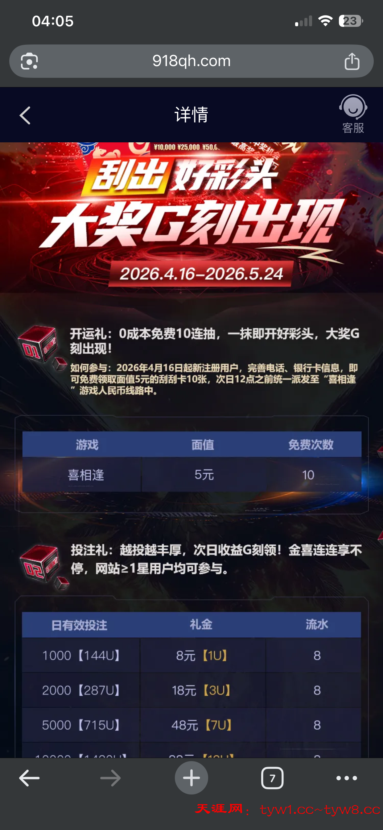 昨天凌晨注册今天早上10点就到了会发信息 免费的10张刮刮奖 我刮了30 刮完可以玩其他的 白嫖即可
